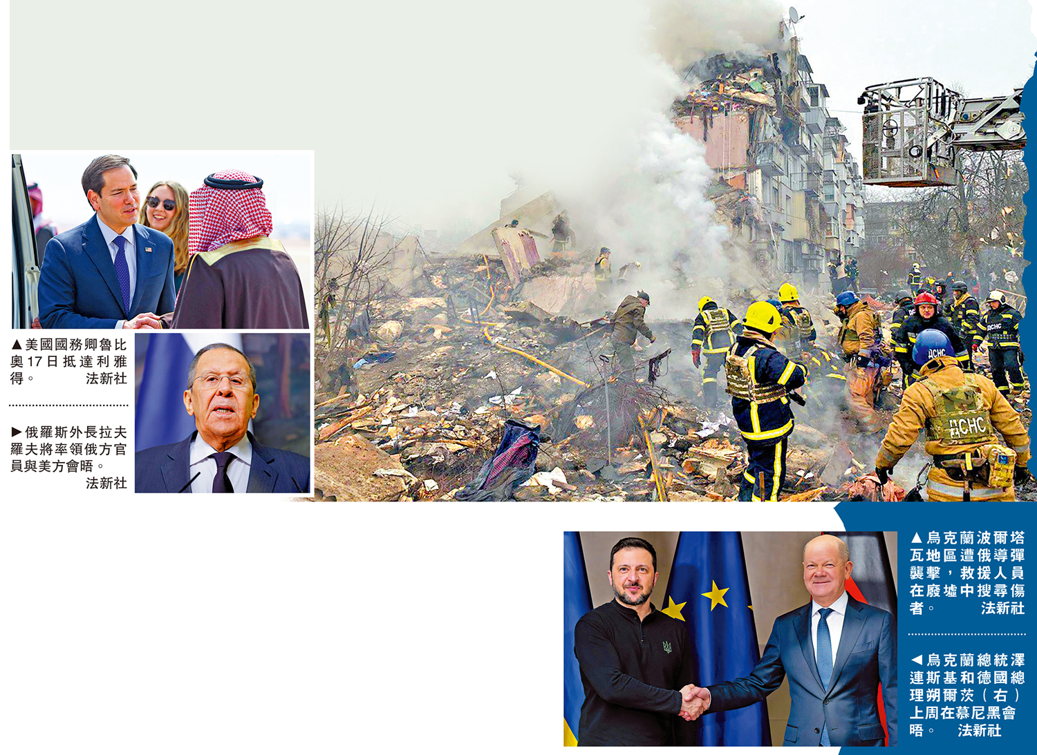 俄烏衝突即將屆滿三年之際,美國和俄羅斯兩國高官於18日在沙特會談,商討結束俄烏戰爭的可行協議,並就「可能在數周內舉行的」美俄元首峰會進行協調。特朗普政府官員透露,希望推動俄烏在今年復活節(4月20日)前實現停火,但有意見認為這個時間不太實際。擔心被邊緣化的歐洲國家於17日在巴黎舉行「緊急峰會」,討論烏克蘭危機和歐洲安全等問題,以應對美歐間日益凸顯的分歧。