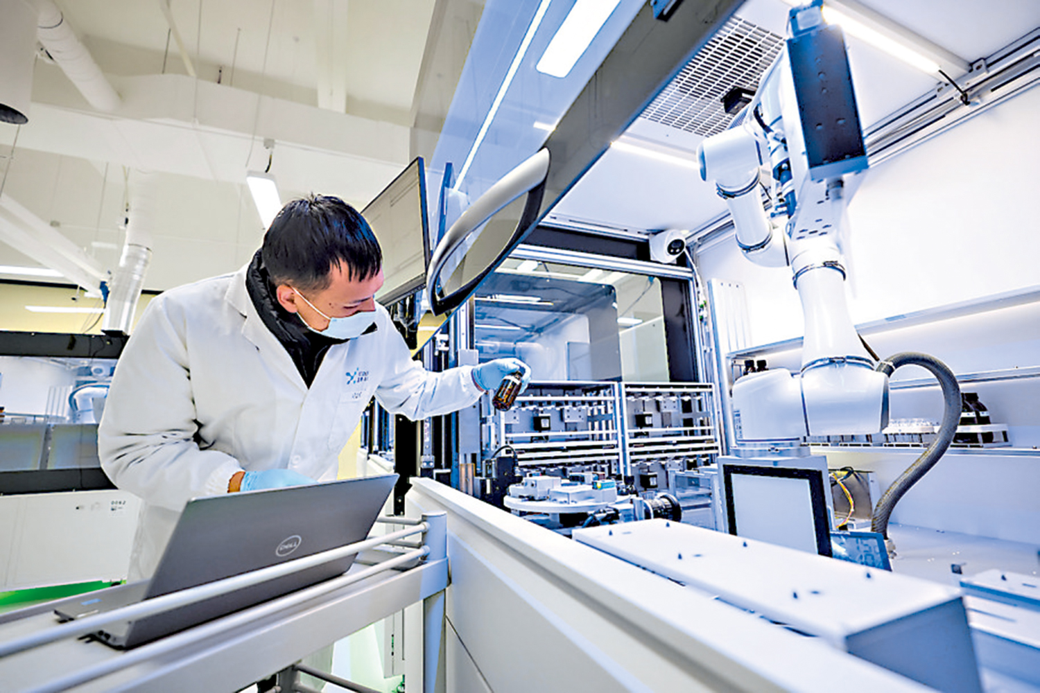 牽頭建設智能化自動化藥物發現中試平台的晶泰科技,是河套深圳園區本土培育的「人工智能+藥物研發」企業。晶泰科技自主研發的智能化自動化藥物研發平台中,人機協作的自動化合成實驗,不僅能實現「7×24小時」不間斷工作,減少人為失誤和依賴,更重要的是能產生更多標準化、高質量數據,反饋給AI模型並持續迭代優化,從而進一步提升反應效率和成功率。
