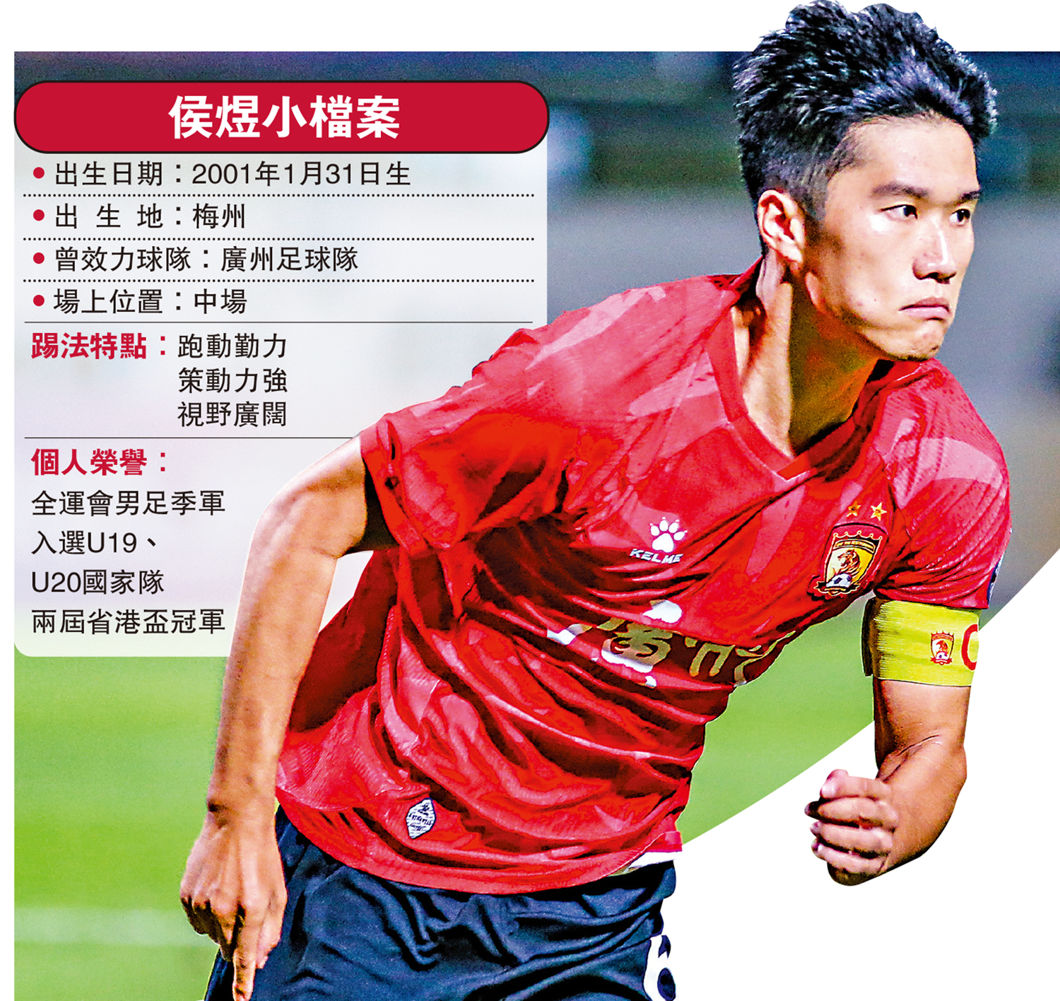 作為現役廣東籍最知名的球員之一,「00後」球員侯煜迄今的職業生涯既幸運又悲情:少年時期進入如日中天的廣州恆大梯隊,不到20歲便站上中超賽場。然而,在逐漸成熟的年紀,自己擔任隊長的廣州隊因故突遭解散。侯煜16歲時入選天津全運會廣東隊,四年後又以超齡球員身份征戰陝西全運會,奪得季軍。年初隨廣東隊奪得省港盃的侯煜,今年粵港澳全運會並不會以球員身份參加,但期待以普通觀眾或其他新角色助力全運足球。\大公報記者 敖敏輝廣州報道