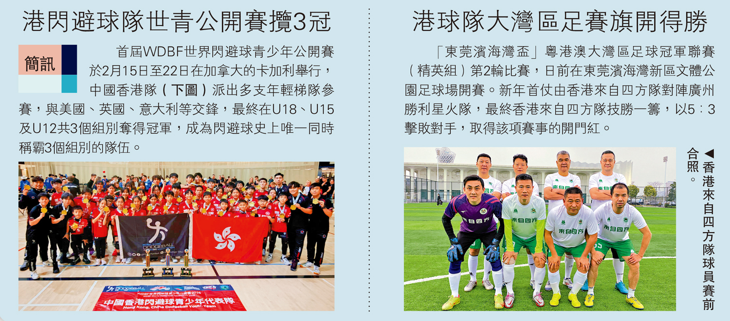 「東莞濱海灣盃」粵港澳大灣區足球冠軍聯賽(精英組)第2輪比賽,日前在東莞濱海灣新區文體公園足球場開賽。新年首仗由香港來自四方隊對陣廣州勝利星火隊,最終香港來自四方隊技勝一籌,以5:3擊敗對手,取得該項賽事的開門紅。