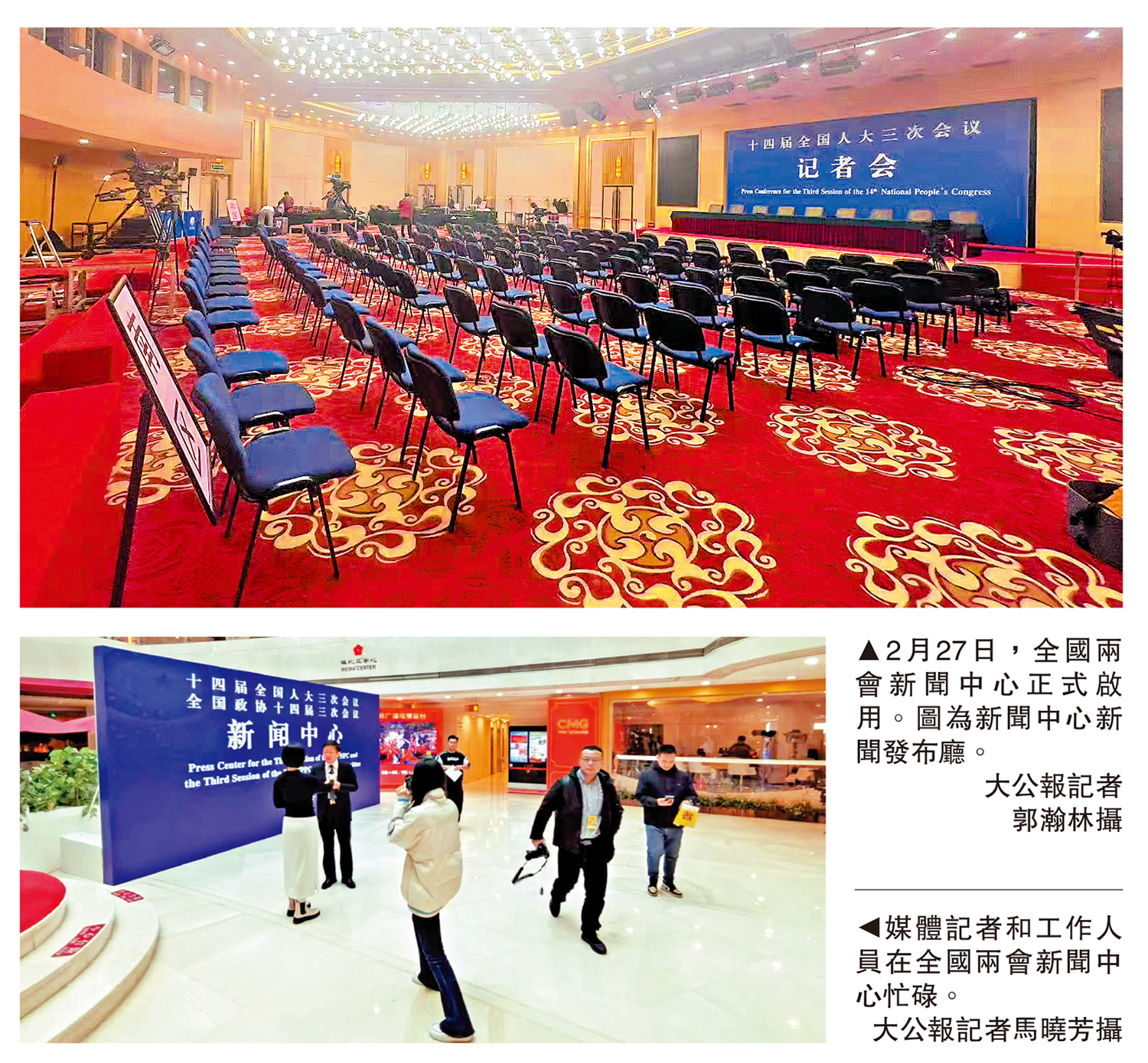 【大公報訊】記者郭瀚林、馬曉芳北京報道:舉世矚目的全國兩會,將分別於3月4日和3月5日在北京開幕,位於北京西長安街北側梅地亞中心的兩會新聞中心27日正式啟用。據悉,目前已有三千多名中外記者報名採訪今年全國兩會,其中境內記者兩千多名,港澳台記者和外國記者一千多名,與去年相比數量進一步增長。