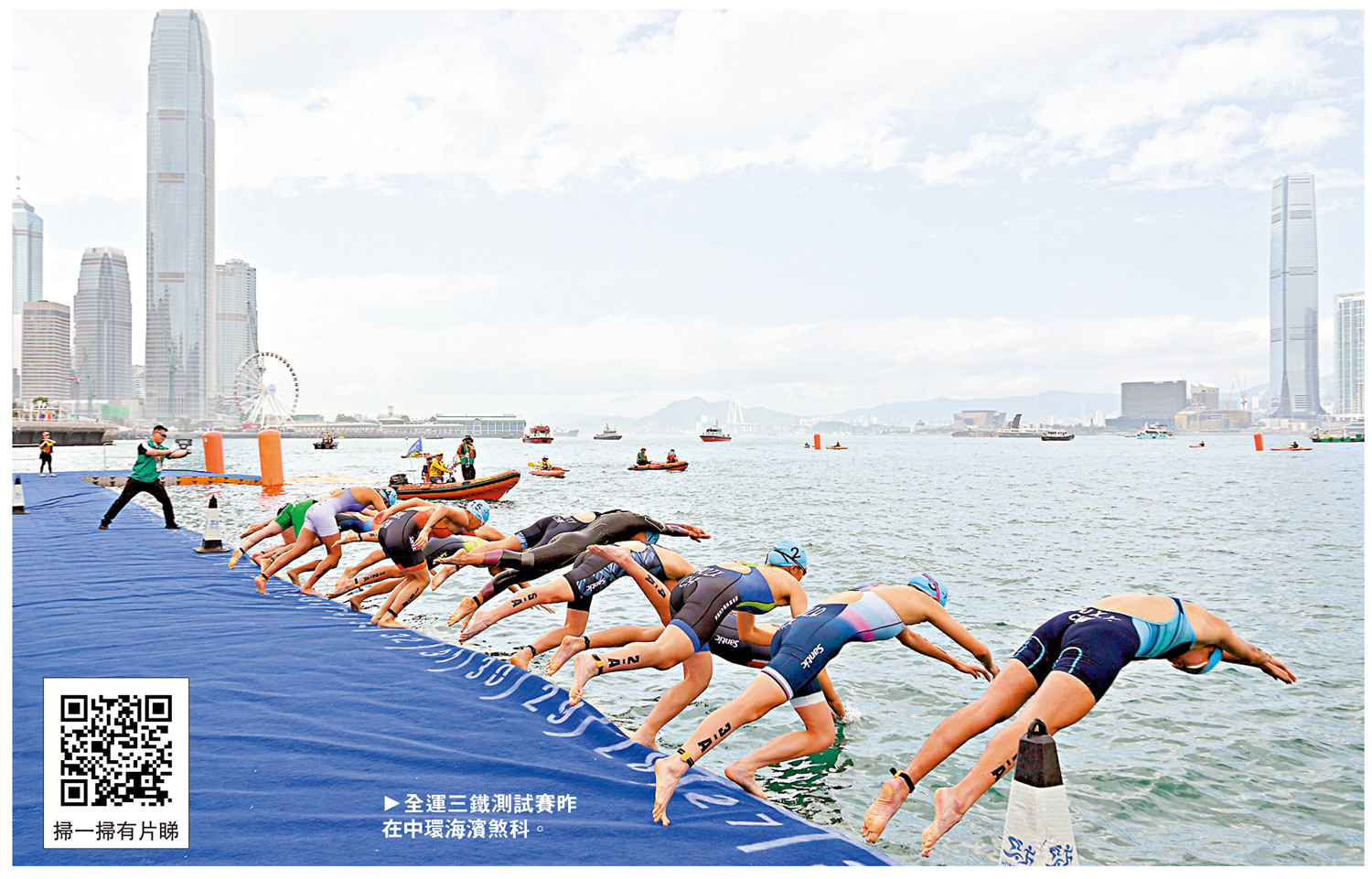 第15屆全國運動會三項鐵人測試賽昨天在香港中環海濱煞科,繼前天的男子組、女子組個人賽結束後,昨迎來混合接力賽,每隊派出男女子運動員各兩名參賽,每棒進行0.3公里游泳、8公里單車及1.7公里跑步的接力賽事。經過激烈的角逐,香港隊獲得季軍,山東隊及遼寧隊則分列冠亞軍。港隊成員奧斯卡賽後大讚賽道設計充滿「香港感覺」,讓健兒享受在高樓大廈地區、海邊跑步的體驗。隊友韋禔則期待能於全運會為港取得獎牌。\大公報記者 朱家立