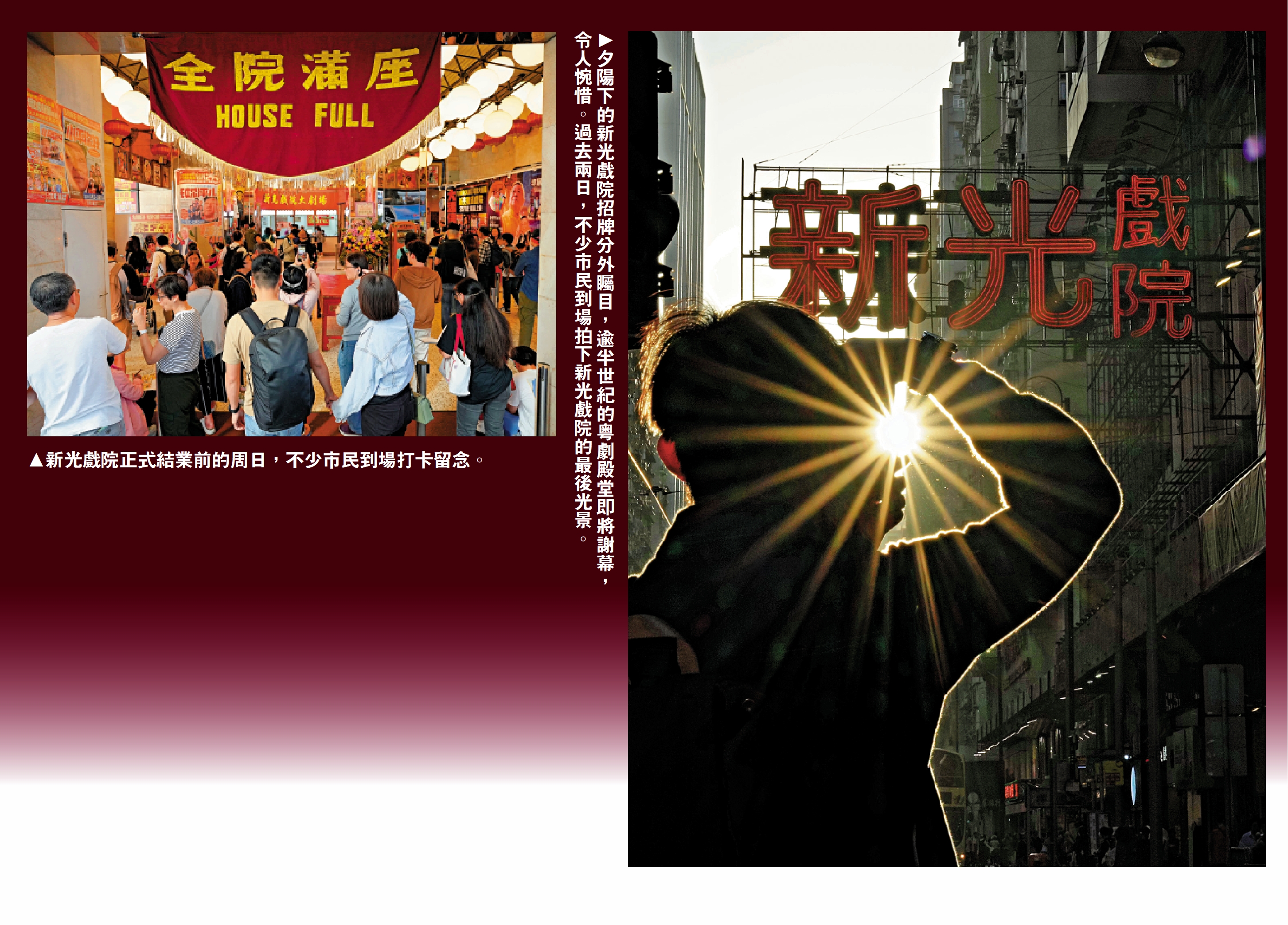 陪伴港人逾半世紀、有粵劇殿堂美譽的新光戲院在今晚最後演出後便正式熄燈拉閘,全港最後一間民營粵劇戲院將落下帷幕。