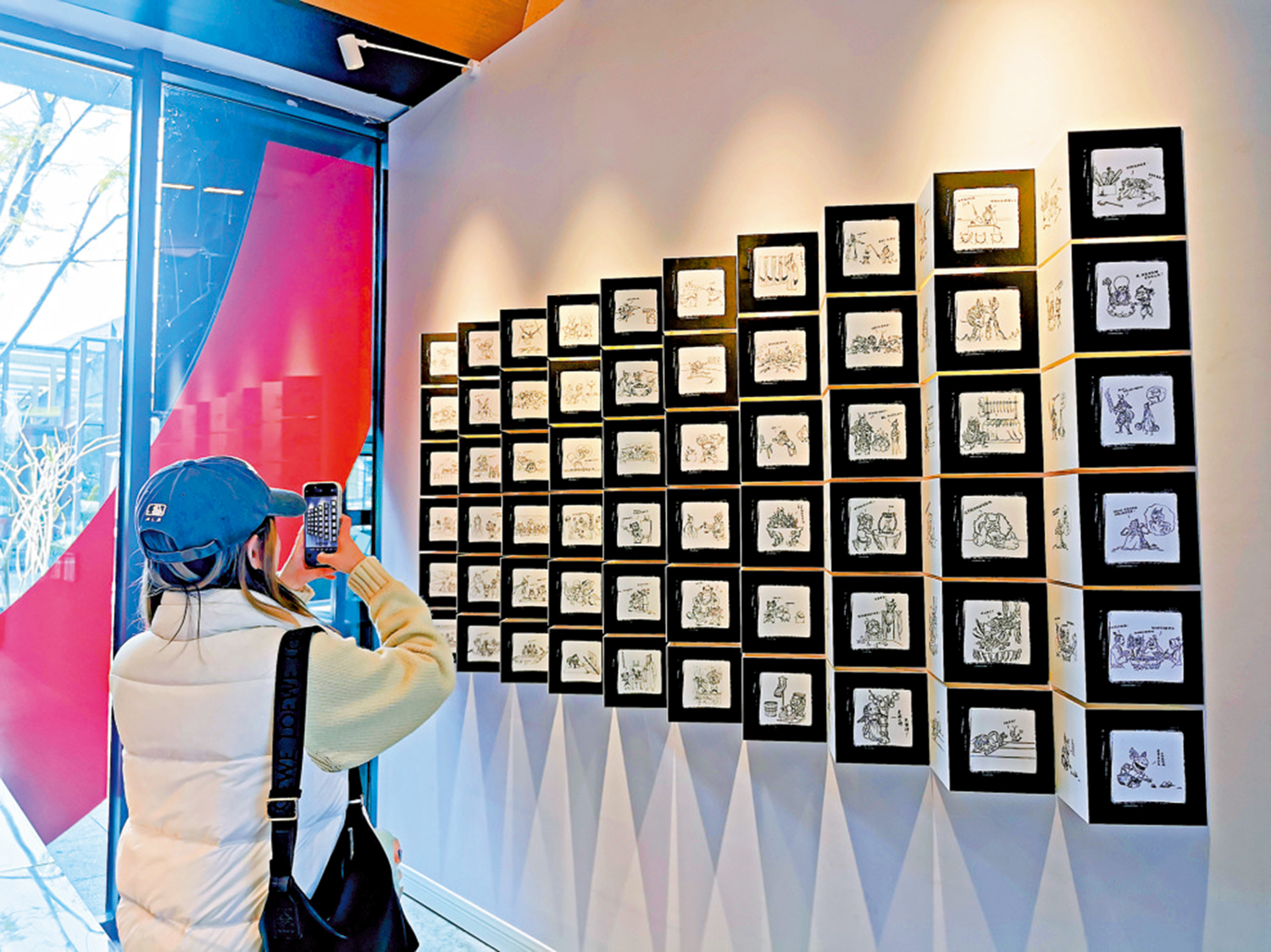 展覽現場還特別設置了「餃子手繪稿打卡牆」,牆上是百餘張由餃子導演親手繪製的海報原稿(掃描件)。海報中極具人物特色的精美形象和語言文字,凝聚着導演對角色性格的深刻理解,也暗藏着一些「小心機」和熱梗。