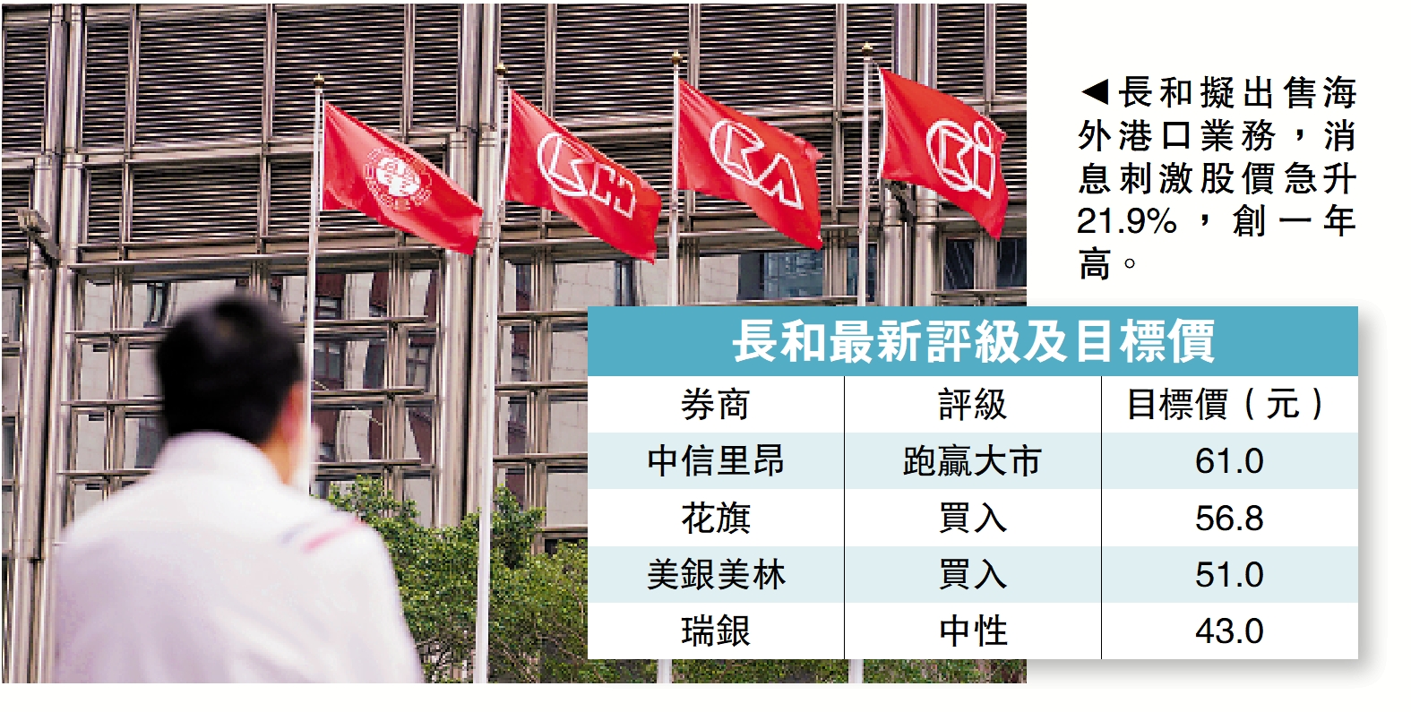 瑞銀認為,若交易最終能落實,料將對股價產生非常積極的影響,因為190億美元的現金收益將超過當前市值,因該股估值僅為預測今年股價對賬面值的0.23倍,股價上漲潛力取決於可能向股東返還多少,該行正在等待管理層對收益用途的評論。該行指,190億美元的現金收益可能使該公司處於淨現金狀態,為再投資其他業務或股票回購提供充足的靈活性。該行維持長和「中性」評級及目標價43元。