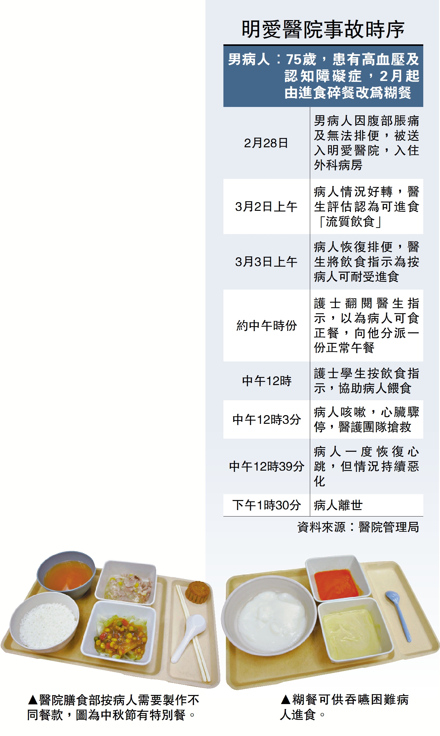 左圖:醫院膳食部按病人需要製作不同餐款,圖為中秋節有特別餐。右圖:糊餐可供吞嚥困難病人進食。