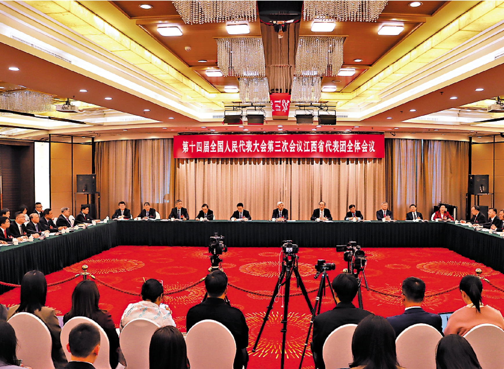 3月6日下午,江西省委書記、江西代表團團長尹弘在十四屆全國人大三次會議江西代表團舉行的開放團組會議上表示,2023年10月,習近平總書記在江西考察時指出要「積極部署未來產業」,為江西加快發展未來產業指明了方向。江西全力以赴「鍛長板」,強化科技創新引領,深化落實《江西省製造業重點產業鏈現代化建設「1269」行動計劃》,全面推進製造業數字化轉型,加強高新技術企業培育,扎實推動新興產業倍增發展,聚焦六大重點方向積極部署未來產業,推動工業成為全省經濟增長的最大亮點。江西「四面逢源」,要主動對接大灣區建設等國家戰略。\大公報記者 王逍、黃慧北京報道