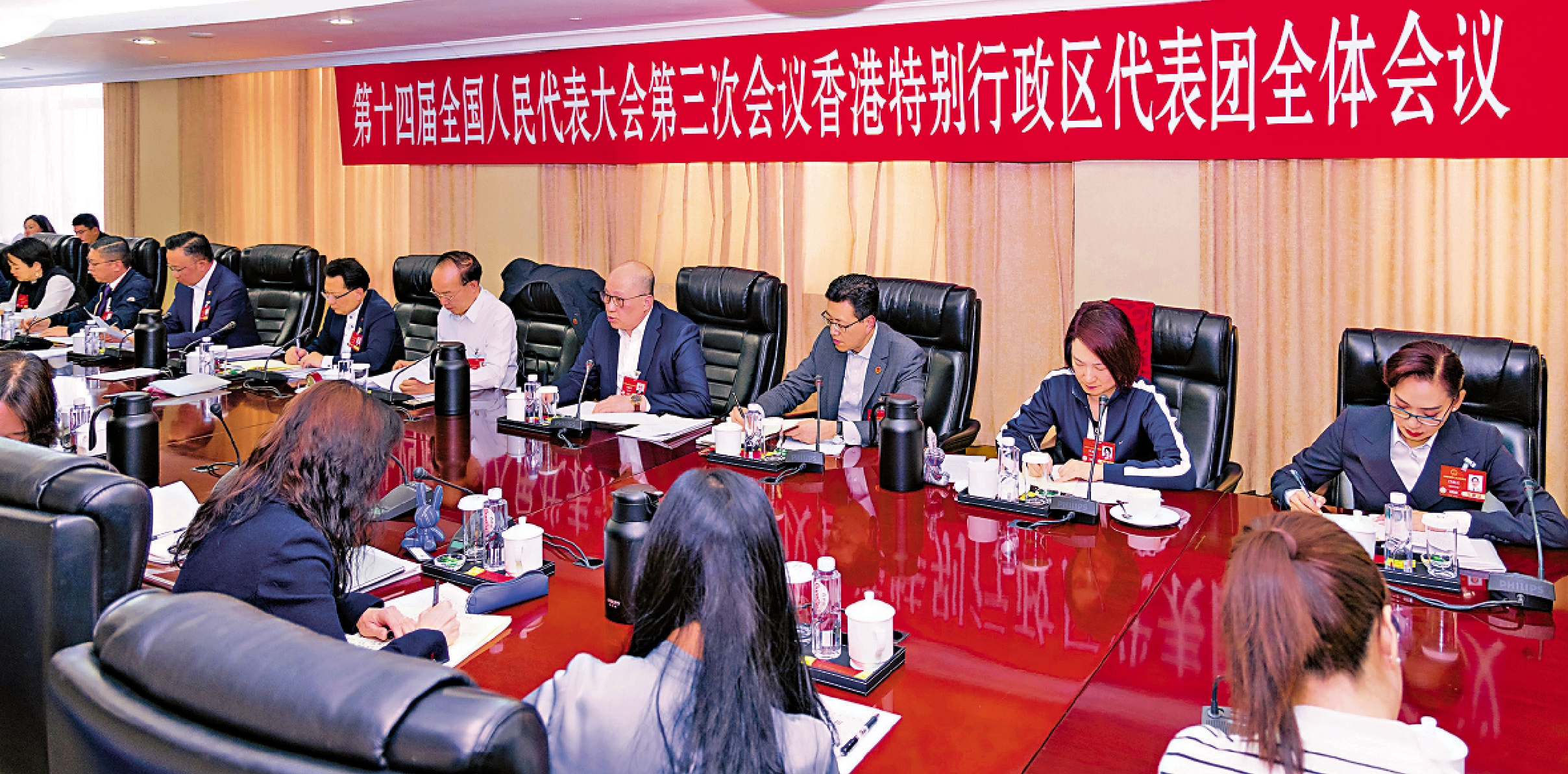 連日來,香港代表團審議認真,氣氛熱烈。在昨天下午的審議中,有19位代表積極發言,高度評價人大常委會工作報告,圍繞學習貫徹習近平總書記重要講話精神、落實丁薛祥副總理的指示要求談認識、談體會,並結合香港實際提出意見建議。