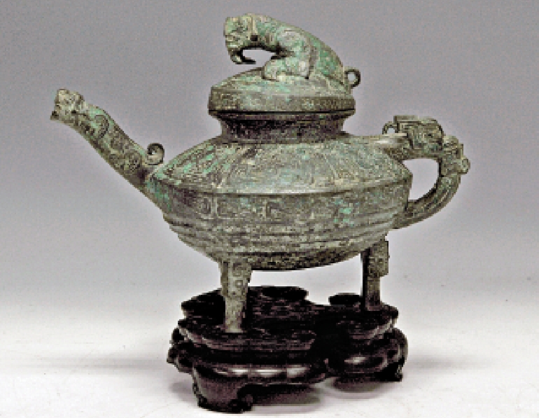 「鎣」是青銅器「盉」的別稱,商周時代水器與盤相配合的盥洗器具,這一件流管上飾卧虎形象、蓋內銘文「自作供鎣」,因而如今定名為「虎鎣」。