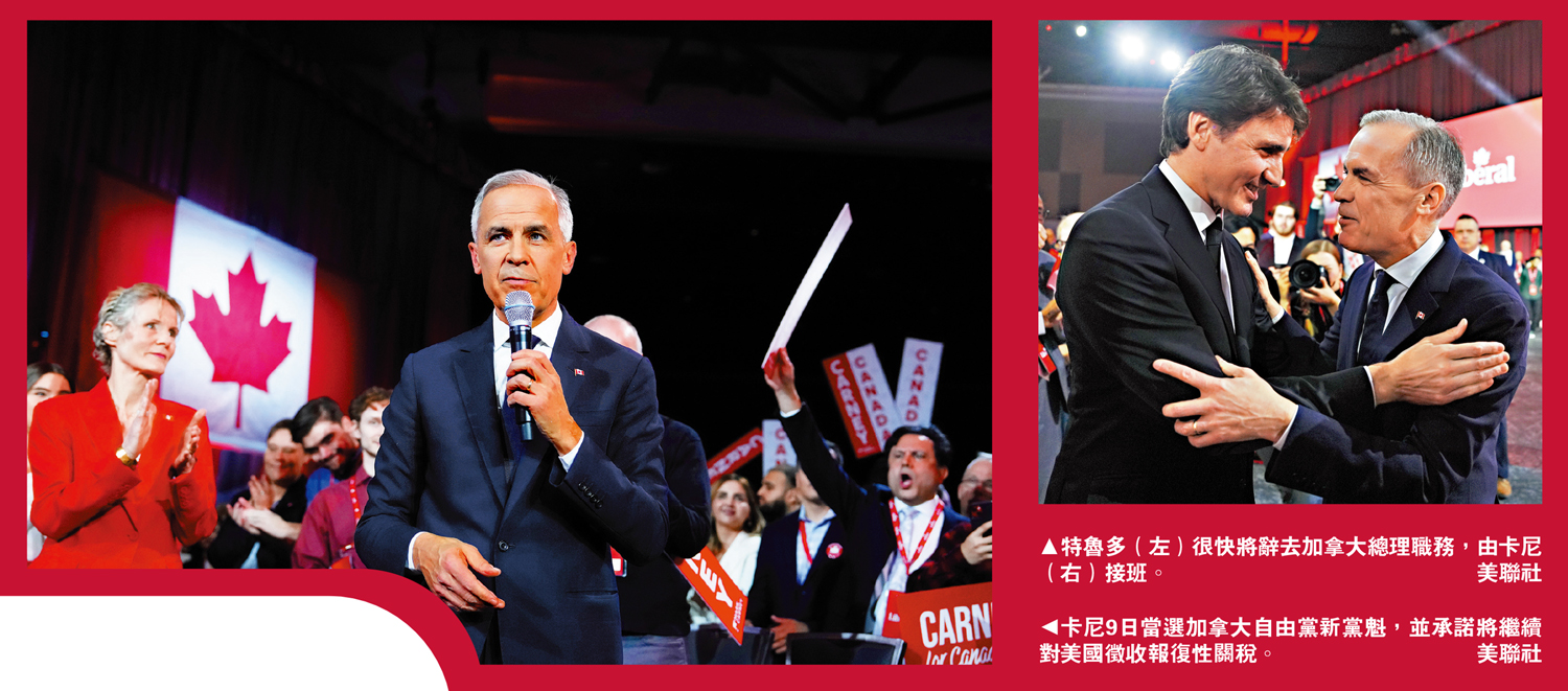 加拿大執政黨自由黨9日宣布,前加拿大央行行長卡尼以壓倒性優勢贏得黨內選舉,成為該黨新黨魁。這位原本的「政治素人」將在數天內接替特魯多,出任加拿大總理並組建新內閣。特魯多當天表示,加拿大正面臨來自鄰國的生存挑戰。卡尼則在演說中呼應,美國覬覦加國的資源,水,土地,甚至是國家。他呼籲加拿大團結一致,不讓美國總統特朗普「得逞」。