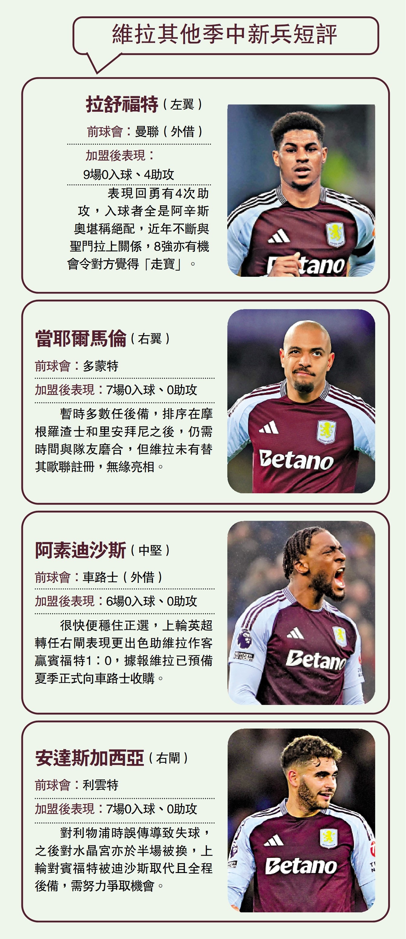 很快便穩住正選,上輪英超轉任右閘表現更出色助維拉作客贏賓福特1:0,據報維拉已預備夏季正式向車路士收購。