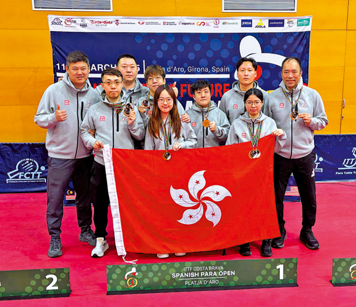【大公報訊】記者張銳報道:中國香港殘疾人運動員在國際賽場上再傳捷報。ITTF西班牙殘疾人乒乓球未來賽2025日前在西班牙的阿羅堡舉行,中國香港隊表現出色,共獲1金5銅。