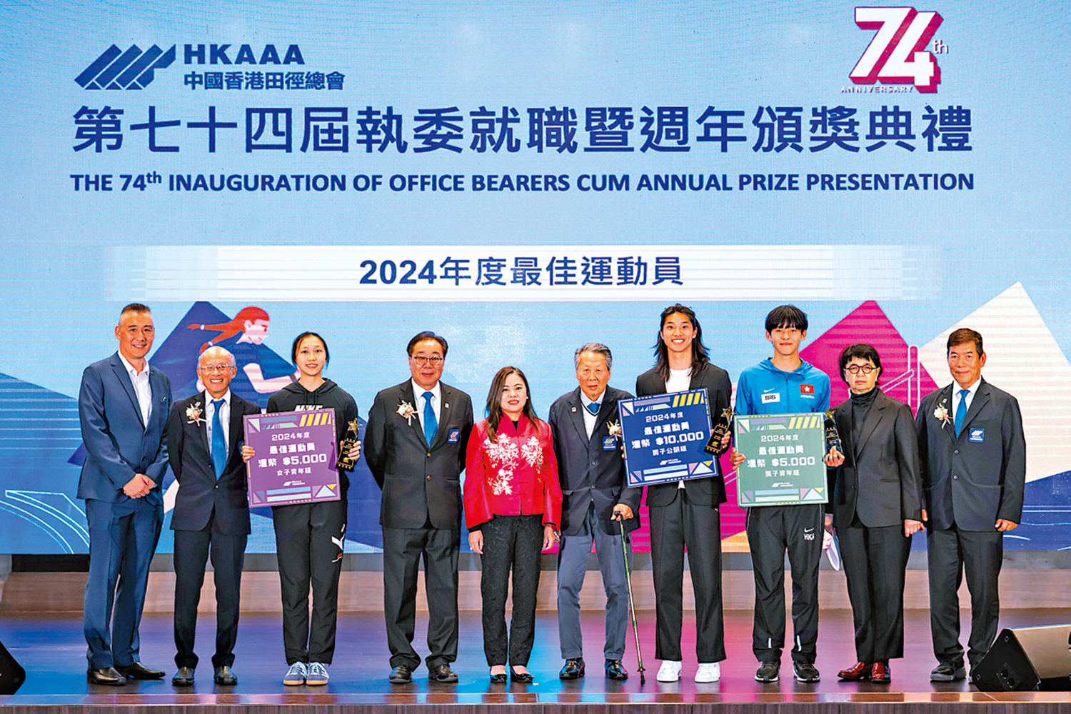 【大公報訊】中國香港田徑總會昨晚舉行「第74屆執委就職暨周年頒獎典禮」,文化體育及旅遊局局長羅淑佩擔任主禮嘉賓,並頒發2024年度「最佳運動員」獎項。各組別的「全年最佳運動員」得獎選手分別是,男子公開組:張紹衡;女子公開組:呂麗瑤;男子青年組:吳君浩;女子青年組:賈慧妍。