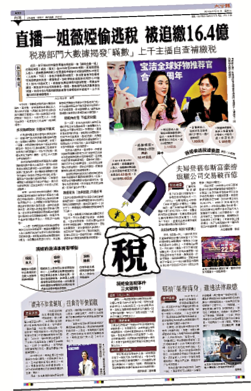 •朱宸慧(雪梨)、林珊珊在2019年至2020年,通過在上海、廣西、江西等地設立個人獨資企業偷逃個人所得稅。2021年,浙江省杭州市稅務部門對朱宸慧追繳稅款、加收滯納金並處罰款共計6555.31萬元,對林珊珊追繳稅款、加收滯納金並處罰款共計2767.25萬元。