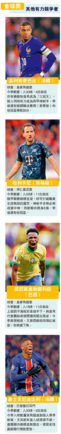 亦有機會助皇馬成為「三冠王」,個人同時有力成為西甲神射手,季後還有歐國聯決賽周(若晉級)和世冠盃爭取加分。