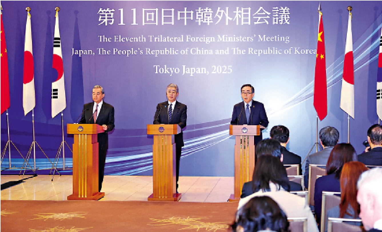 三國將堅守合作初心,圍繞《中日韓合作未來十年展望》,在落實去年三國領導人會議確定的「六大關鍵領域」合作基礎上,拓展新領域、培育新動能、打造新亮點。三方就年內舉行第十次中日韓領導人會議進行了有益溝通,將努力為此營造良好條件和氛圍。