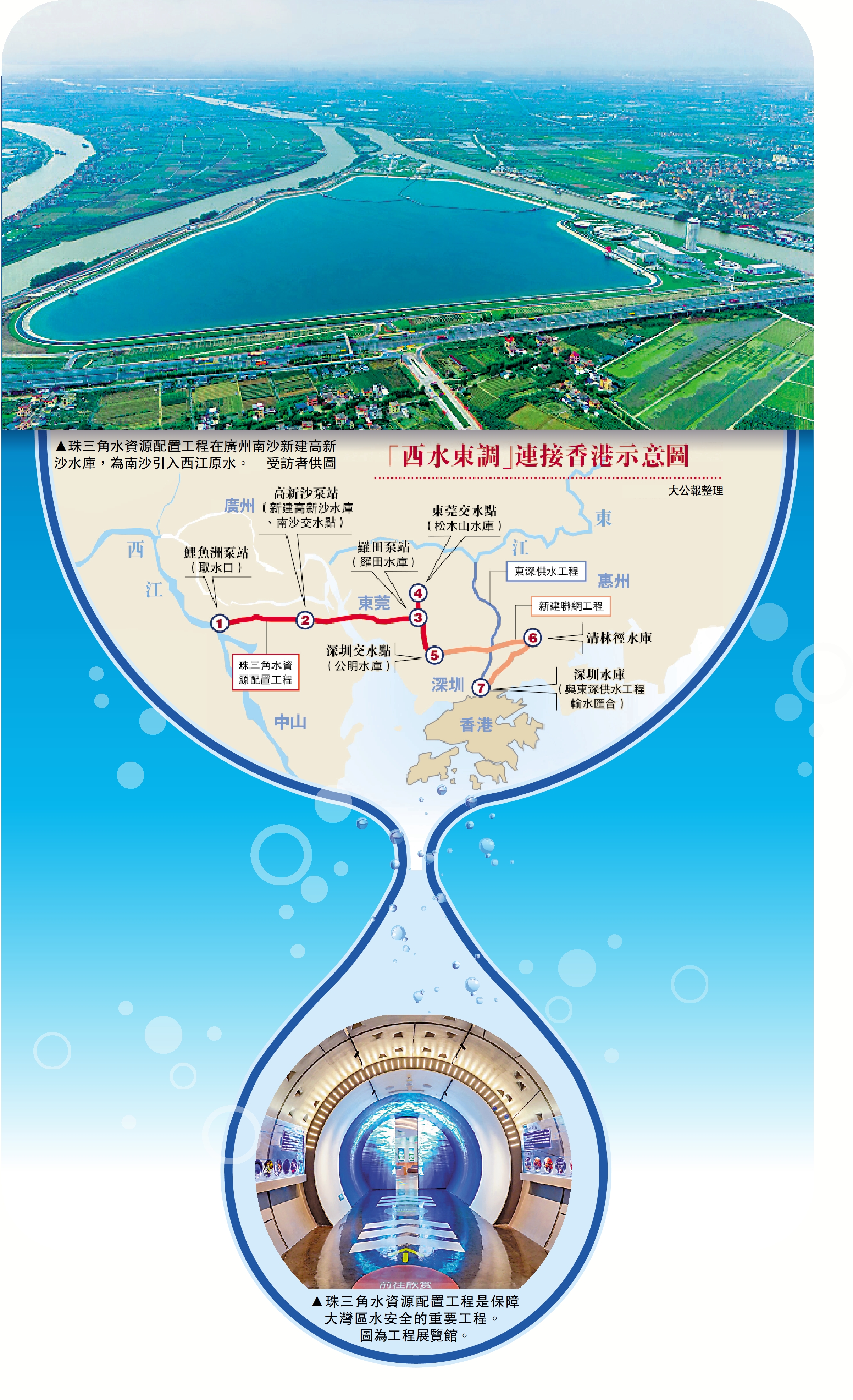 今後,南沙供水水源單一、鹹潮上溯影響、無應急備用水源等水資源難題將得到有效解決,百萬南沙人開始喝上用上量沛質優的西江水,進一步強化了灣區供水安全。該工程同時為香港、廣州番禺、佛山順德等多個城市提供應急備用水源,為大灣區可持續發展提供支撐。\大公報記者 李紫妍廣州報道