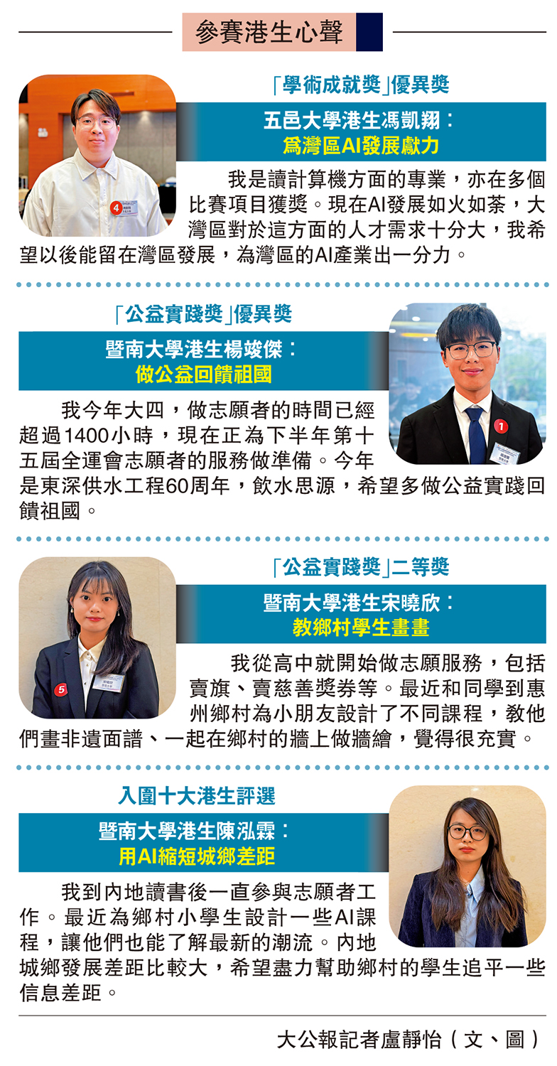 我是讀計算機方面的專業,亦在多個比賽項目獲獎。現在AI發展如火如荼,大灣區對於這方面的人才需求十分大,我希望以後能留在灣區發展,為灣區的AI產業出一分力。