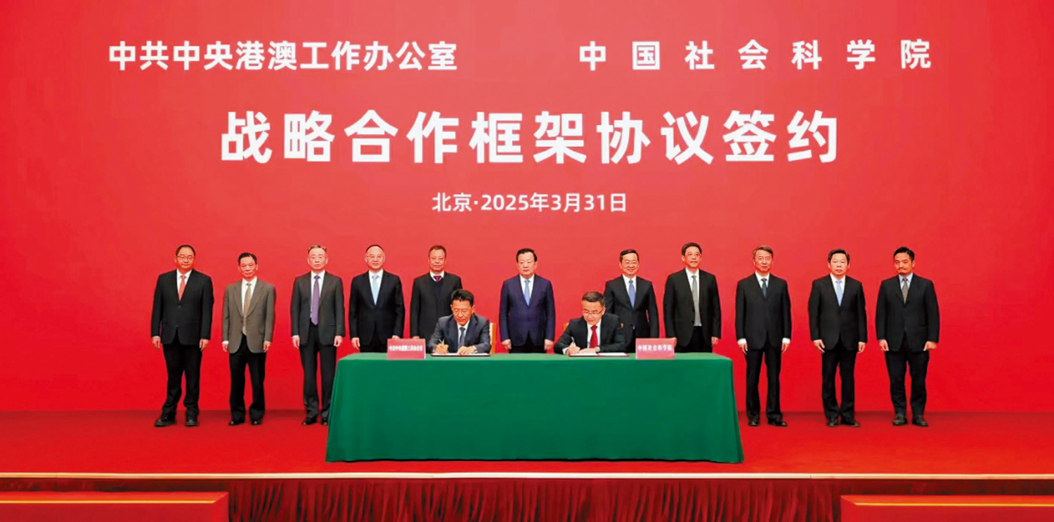 中共中央港澳工作辦公室與中國社會科學院簽署戰略合作框架協議,旨在深入落實黨中央有關部署要求,全面準確、堅定不移貫徹「一國兩制」方針,依託善用各自優勢,聯合組建合作平台,研究闡釋宣傳習近平總書記關於港澳工作的重要論述,共同做好「一國兩制」理論和實踐研究,積極構建「一國兩制」基礎理論和學術話語體系,為推進新時代新征程「一國兩制」實踐行穩致遠提供理論支撐、智力支持和人才保障。