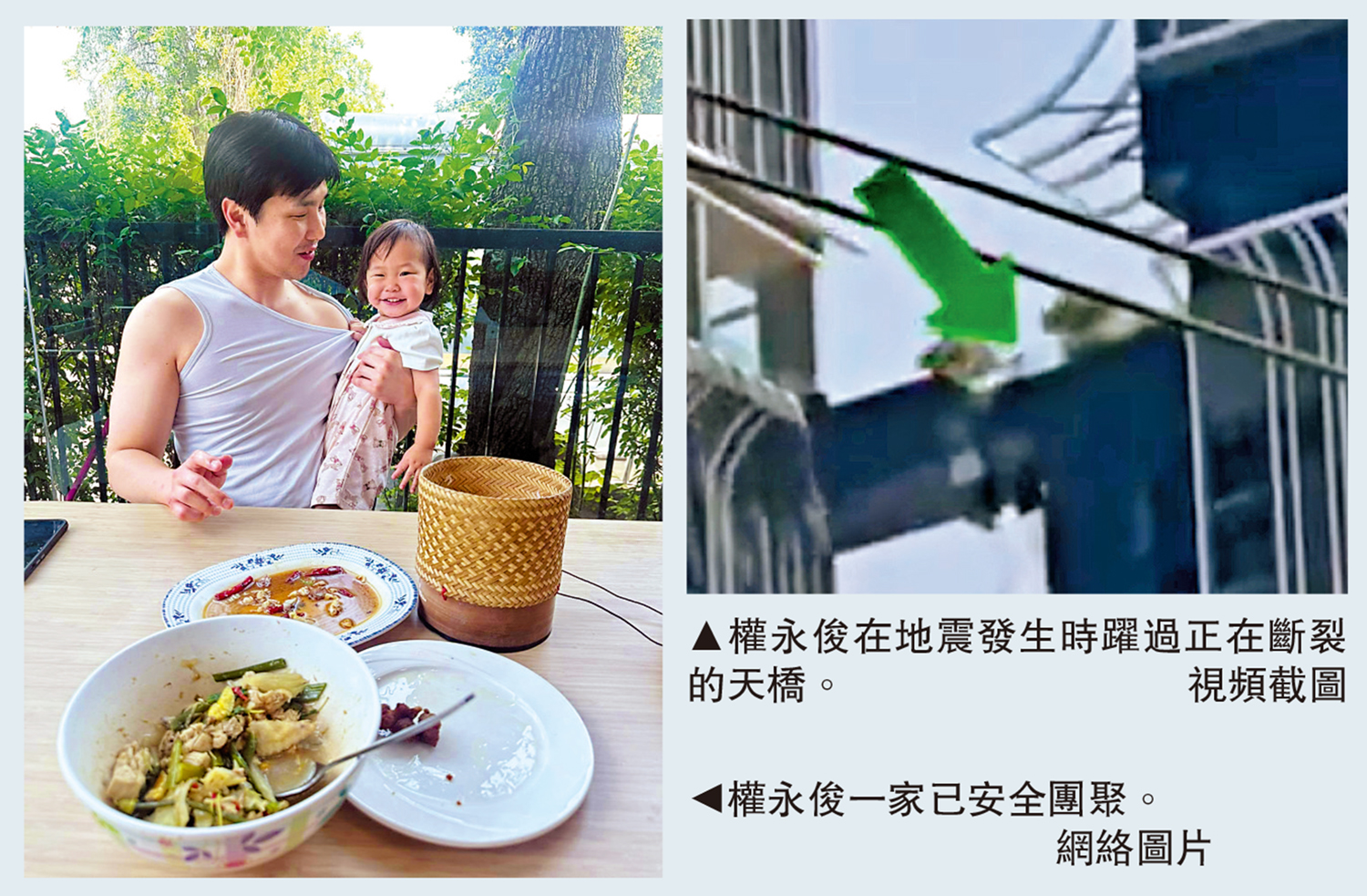 【大公報訊】據《海峽時報》報道:緬甸3月28日發生大地震,泰國首都曼谷震感強烈。一名居住在曼谷的28歲韓籍男子為救妻女,冒着生命危險從50層樓高度躍過正在斷裂的空中天橋,相關視頻片段在社交媒體瘋傳。泰國網紅企業家寶尤莉事後證實,這名男子是她的丈夫權永俊,他們一家三口均安然無恙,並感嘆:「我沒有嫁錯人。」