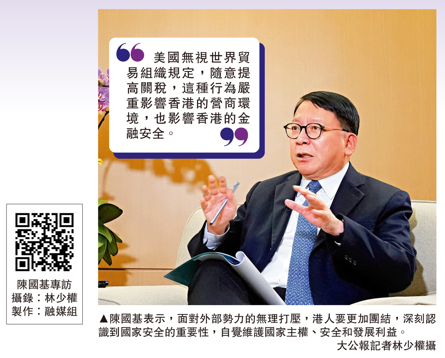 陳國基強調,國家安全不僅包括武力等傳統意義上的軍事安全,近期美國宣稱加徵所謂「對等關稅」亦威脅國家安全中的金融領域安全,讓市民更加意識到國家安全的重要性。面對外部勢力的無理打壓,香港市民要更加團結,自覺維護國家主權、安全和發展利益。\大公報記者 義昊