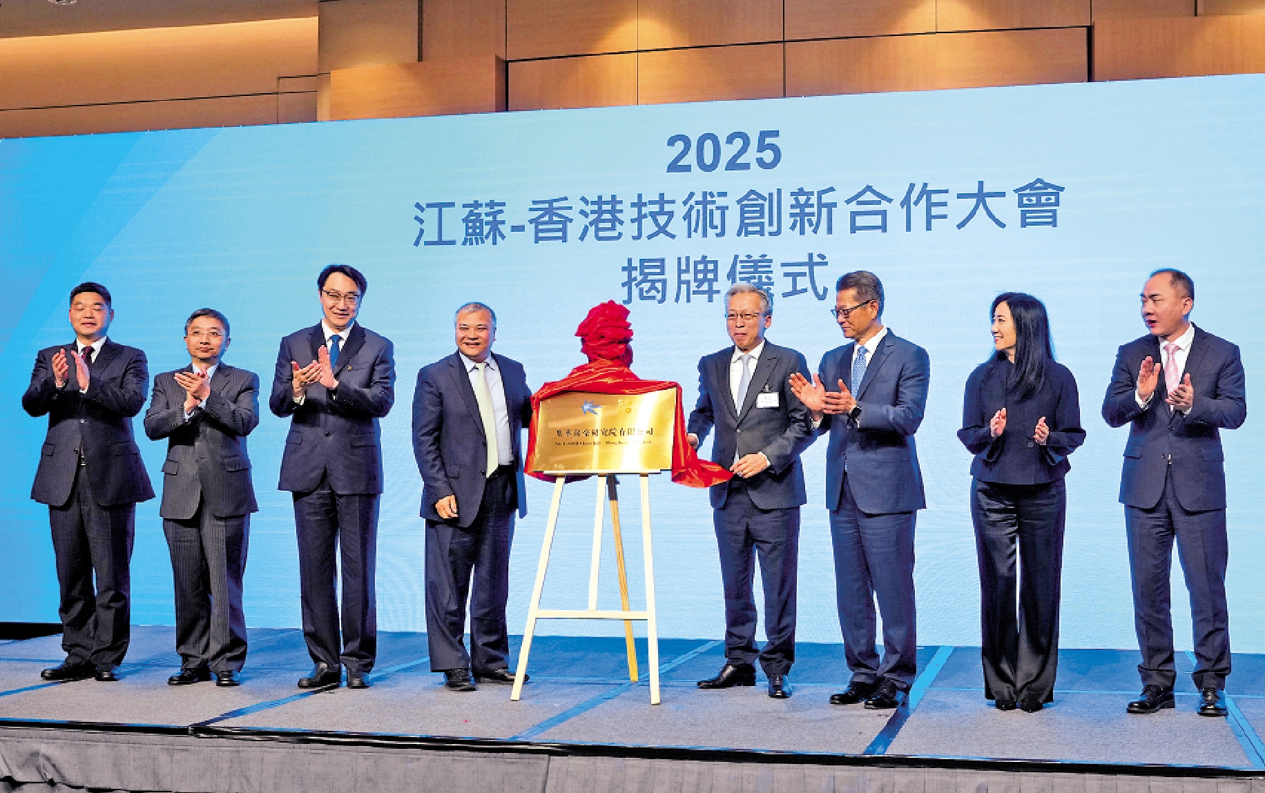 趙岩、陳茂波及方舜文昨日參與了揭牌及簽約儀式。在揭牌簽約環節,江蘇省蘇豪控股集團與江蘇省產業技術研究院共建的「集萃蘇豪研究院」、江蘇省生產力促進中心與香港理工大學共建的「江蘇省生產力促進中心(粵港澳大灣區)創新服務驛站」,及南京資訊工程大學與香港浸會大學共建的「蘇港澳大學高校災害防禦與緊急管理專業聯盟」於現場正式揭牌。