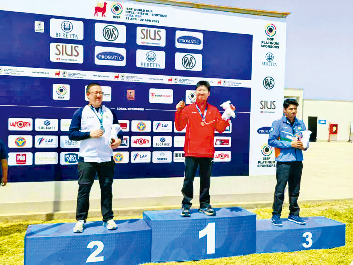 【大公報訊】據新華社報道:2025年射擊世界盃秘魯站當地時間15日進行了首個比賽日爭奪,23歲國家隊小將胡凱延續了近期火熱的狀態,在男子10米氣手槍項目上成功問鼎,個人連續兩站世界盃分站賽奪金。