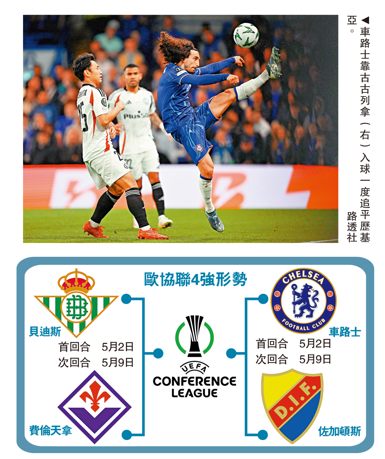 【大公報訊】歐協聯8強首回合領先波蘭球隊歷基亞3球的車路士,於昨晨次回合回到史丹福橋主場出擊,即使作出近半隊輪換但球員身價仍遠勝對手之下,最終卻竟以1:2吃敗,雖然無礙以總成績4:2淘汰對手,但完場後球迷就向球隊報以噓聲表達不滿。