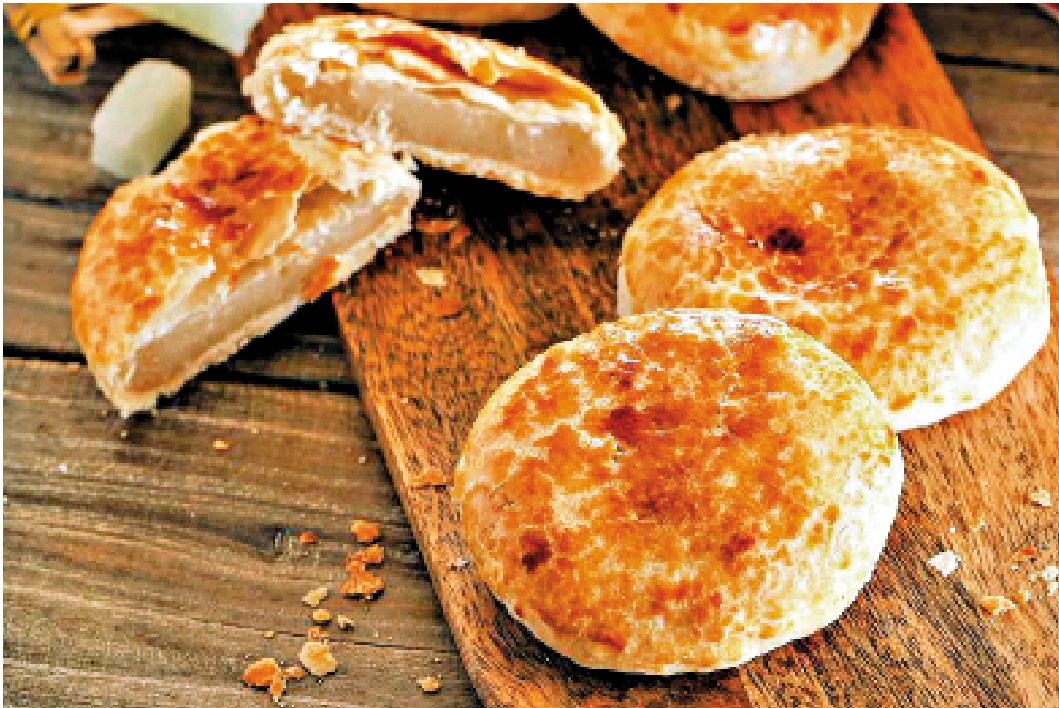 一九九七年香港回歸祖國前夕,元朗餅舖已形成產業集聚,年產量達四千八百萬件,七成經羅湖口岸北銷。老婆餅這道源自潮州的甜食,歷經廣府商業文明的鍛造,最終在香港完成國際化轉身,又以「非遺手信」身份回歸故土,形成「潮州起源─廣州定型─香港揚名」的文化閉環。之後,婚嫁禮餅製作技藝更是入選香港非遺清單,老婆餅成為機場免稅店熱銷手信。機場免稅店裏,改良版迷你老婆餅採用獨立包裝,保質期延長至九十天,年出口量突破百萬盒。據統計,二○一九年入境遊客手信消費中,老婆餅佔比百分之二十三,其文化吸附力遠超杏仁餅與雞蛋卷。「帶一盒老婆餅返內地」逐漸成為大灣區民間交往的縮影。