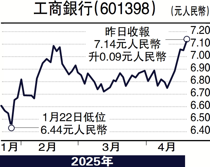同時,建銀國際研究報告指出,中國銀行業的資產負債表韌性為當前易受潛在政策變化影響的經營環境提供穩定性,有助於緩解關稅相關的波動。由於中國銀行體系比十多年前更能應對美國的新關稅制度,即使2025財年的經營環境充滿挑戰,相信中國銀行業的利潤仍將保持穩定。此外,建銀國際認為工商銀行能提供最穩固的股息收益率,在當前不確定時期,憑藉其充足的流動性、強大的減值準備和資本充足率,相信會成為資金的避風港。