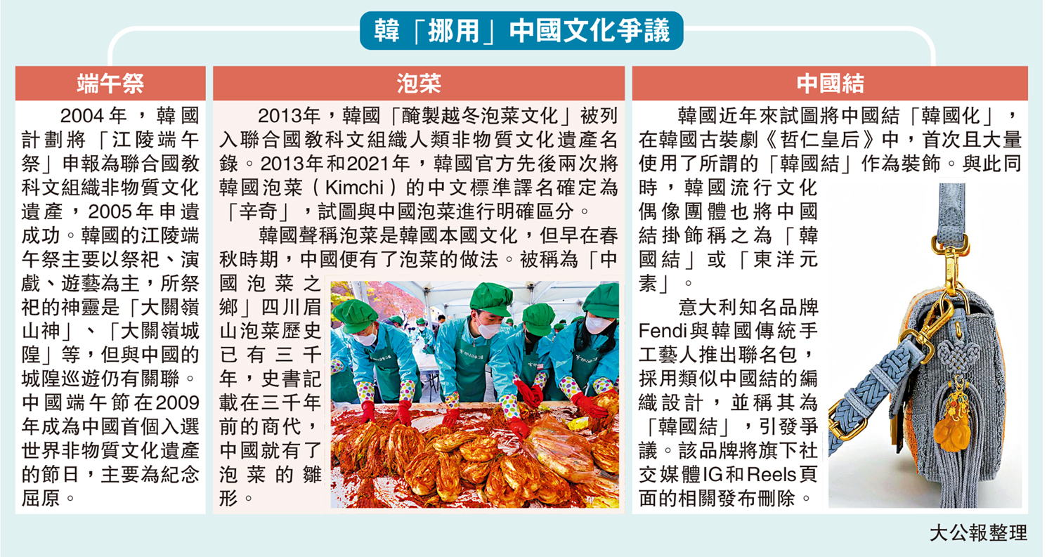 意大利知名品牌Fendi與韓國傳統手工藝人推出聯名包,採用類似中國結的編織設計,並稱其為「韓國結」,引發爭議。該品牌將旗下社交媒體IG和Reels頁面的相關發布刪除。