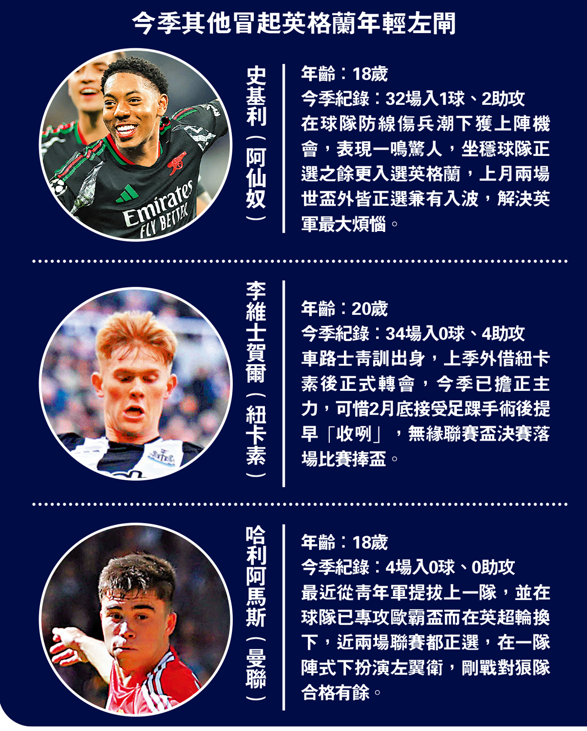 最近從青年軍提拔上一隊,並在球隊已專攻歐霸盃而在英超輪換下,近兩場聯賽都正選,在一隊陣式下扮演左翼衛,剛戰對狼隊合格有餘。