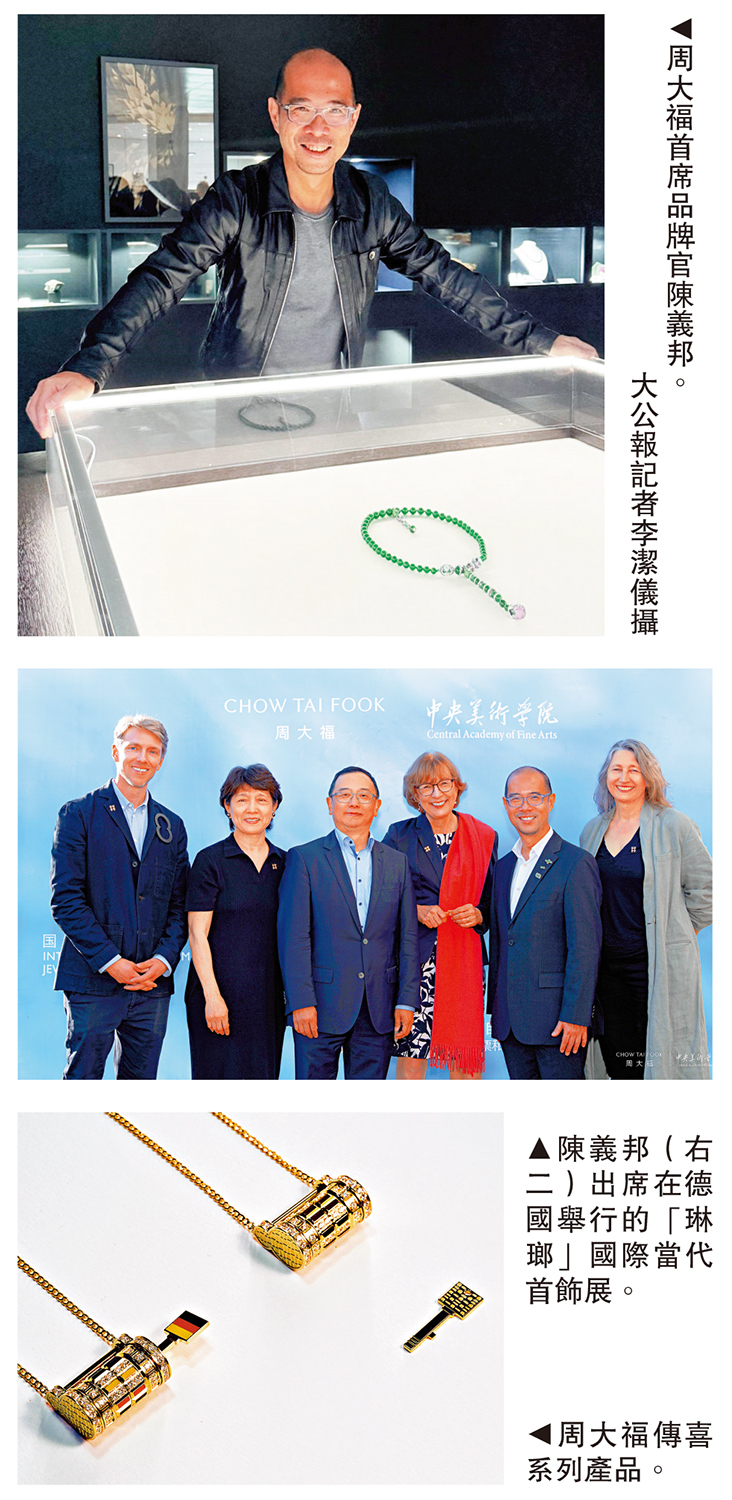 【大公報訊】記者李潔儀德國報道:周大福(01929)近年積極通過國際展會推動中國文化藝術「出海」。周大福首席品牌官陳義邦接受訪問時表示,此舉不僅能提升品牌國際影響力,更能借鑒海外同業先進經驗。他強調,集團正着力打造高級珠寶產品線,在鞏固黃金業務優勢的同時,展現集團在珠寶設計領域的實力。