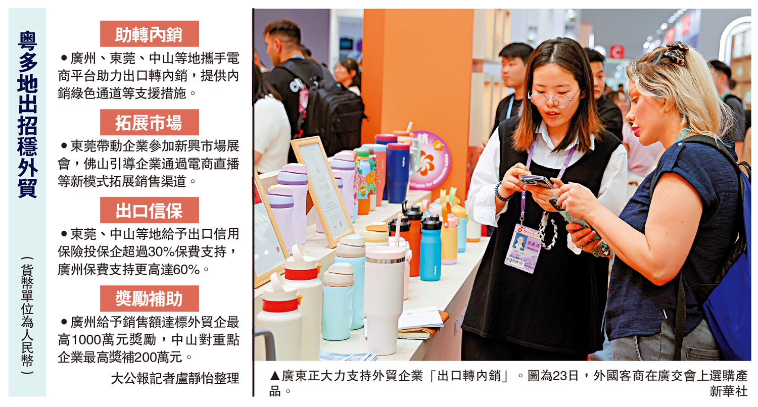 美國掀起關稅戰,國際貿易環境複雜化。作為全國外貿大省的廣東,正大力支持外貿企業「出口轉內銷」,其中廣州28日舉行外貿優品中華行廣州站活動「電商助力廣貨優品拓新路」,幫助外貿企業將優質外貿產品轉內銷市場。廣州市商務局表示,活動目的是要充分發揮電商平台、行業商協會優勢,為企業提供全方位的支持。