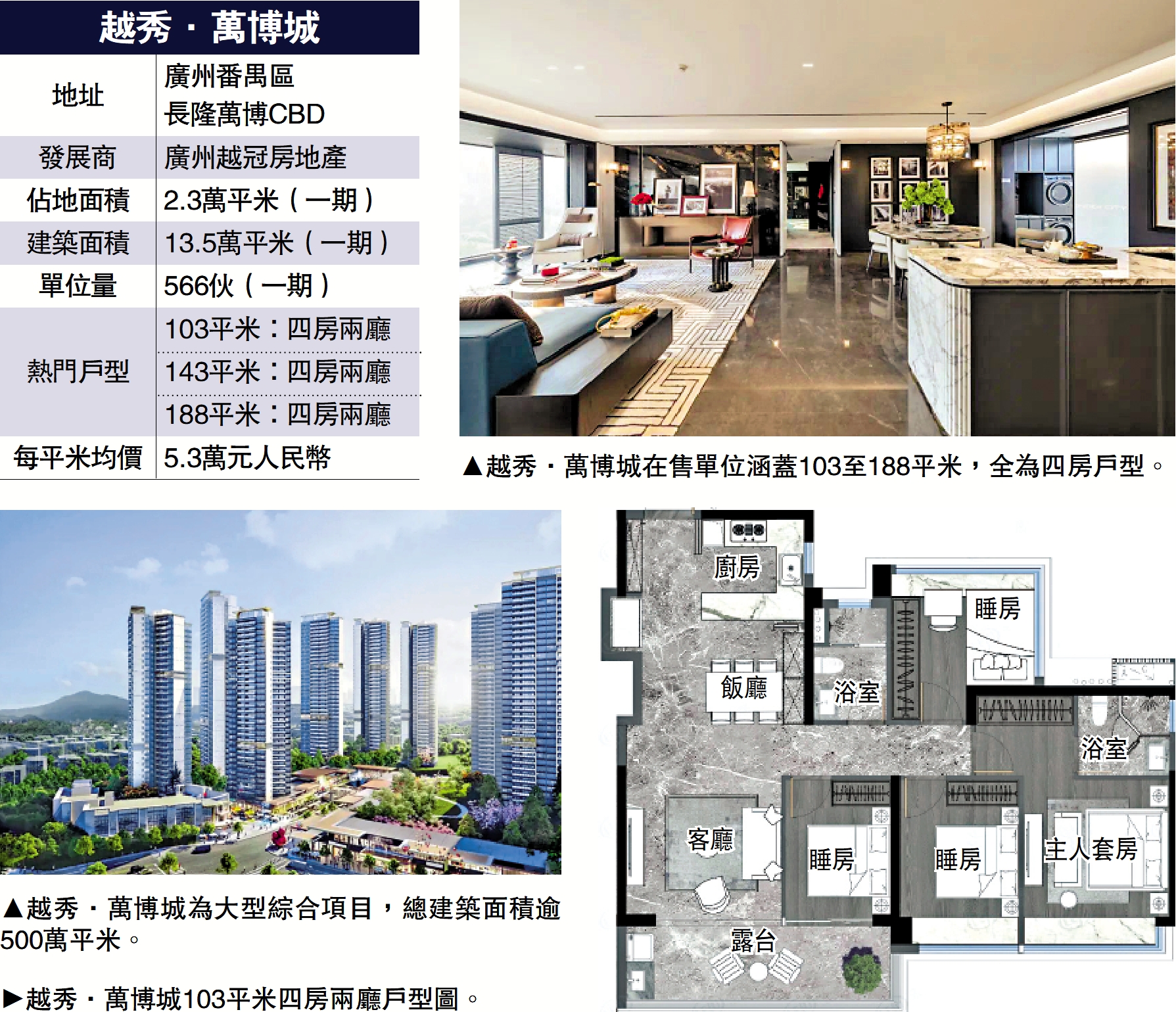 廣州番禺萬博CBD最近又有新盤推出,由越秀地產打造、總投資額近500億元(人民幣,下同)的越秀·萬博城,總建築面積逾500萬平米,集產業、商業、教育、醫療與住宅於一體,將成為區內最大舊改地標,定位「廣州第二個珠江新城」。項目周邊企業林立,包括希音、微軟、攜程、虎牙等,屬廣州近年企業進駐最密集區域之一。越秀首期推出的「和臻組團」主打改善型單位,現正銷售。
