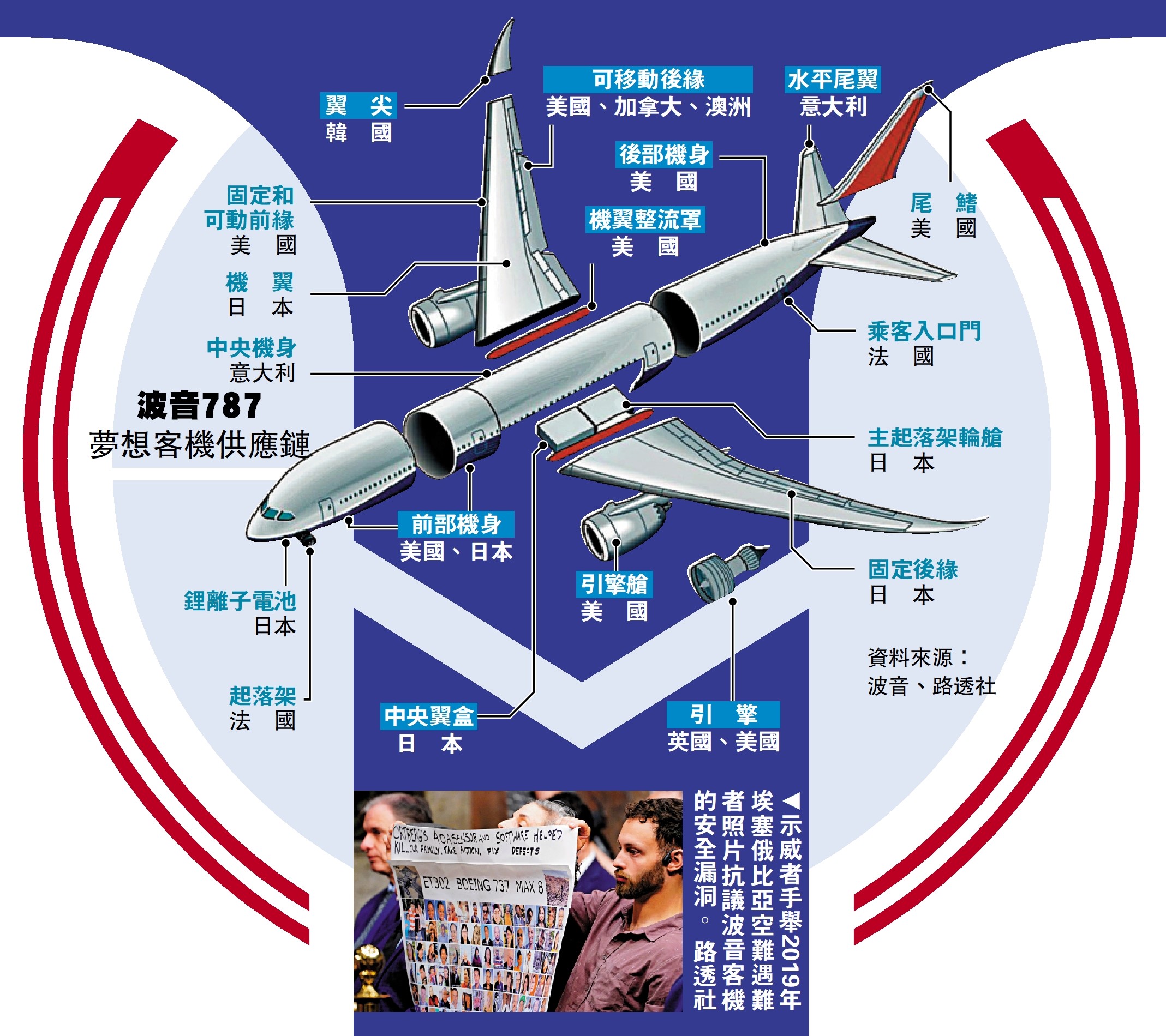 波音787夢想客機就是一款典型的跨國產品,其零件來自世界各地:機翼來自日本、艙門來自法國、機身中部在意大利製造,最終這些在海外生產的零件會被運往美國南卡羅來納州,在波音總裝生產線上完成組裝。