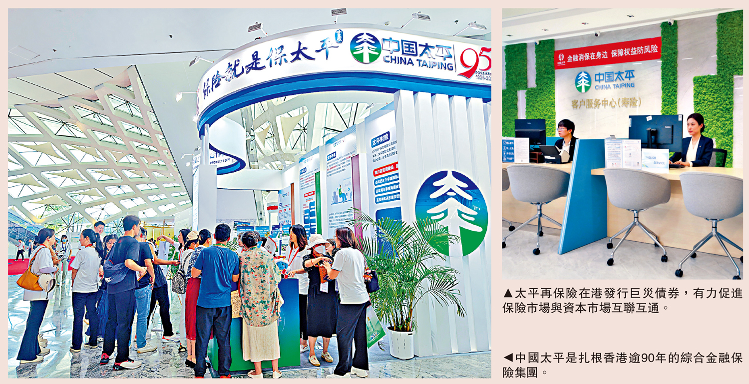 中國太平積極響應國家戰略,以「立足港澳、深耕大灣區」為核心,通過多維度布局支持香港鞏固國際金融中心地位。其中,支持香港建設國際風險管理中心是集團的重點發展方向。今年初,中國太平旗下太平再保險成功在香港發行亞洲首支採用「雙風險、雙觸發機制」的巨災債券,有力促進了保險市場與資本市場的互聯互通。