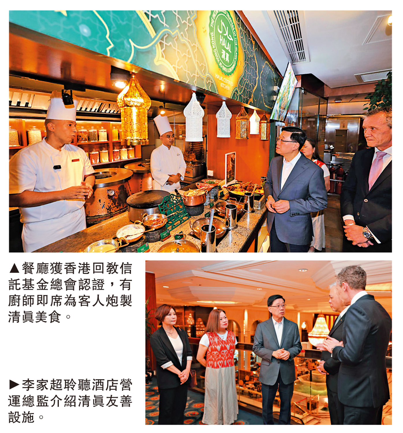 位於尖沙咀的「國金軒」也取得清真友善認證,提供多款清真粵菜,包括採用經過清真認證肉類製作的姬松茸香葱蒜片牛柳粒、西檸杏片百花雞球等菜式。