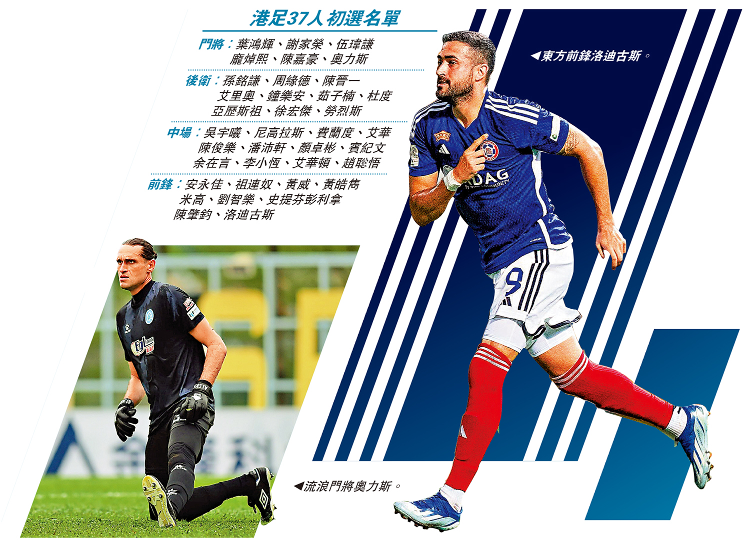 另一新入選的烏克蘭門將奧力斯,現年35歲,身高1米98,上周五亦取得香港特區護照,隨即以本地球員身份為流浪出戰港超聯賽。他本季在各項賽事上陣7場共失13球,僅在對九龍城一役保持「清白之身」。連同早前的賓紀文、李小恆等,今次名單中「入籍兵」約佔三分之一。