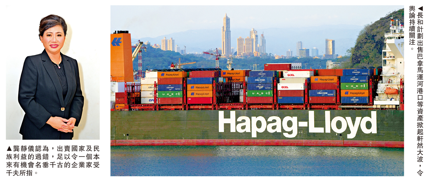 長江和記公司計劃向美國財團出售巴拿馬運河港口等資產一事掀起軒然大波,輿論持續關注。執業大律師龔靜儀接受《大公報》專訪表示,有關交易將中國外貿咽喉要道拱手送敵,是以商業交易作為幌子,實質上是出賣國家利益、危害國家安全的勾當,任何國家和地區都不會容忍這種資敵行為。