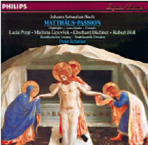 一七二七年,身為萊比錫聖托馬斯教堂音樂總監的巴赫為復活節前的周五譜寫了著名的、描述耶穌基督從降生到受難再到復活的宏大《馬太受難曲》。兩周前的周日,再訪聖托馬斯教堂的我有幸在巴赫的安息之地親歷一場教堂音樂會。坐在觀眾席中聆聽着巴赫的音樂,除了有時空穿越之感,感覺靈魂都被洗禮了。想到當年門德爾松偶然在萊比錫發現並力排眾議首演巴赫的《馬太受難曲》,且二人都長眠於此,似乎更能感受到這座城市的獨特氣場。藉着在巴赫工作了二十七年的聖托馬斯教堂聽罷現場音樂會的熱乎氣,本周推薦一張巴赫的《馬太受難曲》選段。專輯由飛利浦唱片公司於一九八五年灌錄並發行,德國指揮家彼得·舍爾勒執棒薩克森國立管弦樂團和萊比錫廣播電台合唱團,攜手斯洛伐克女高音路契婭·波波娃、荷蘭男低音羅伯特·霍爾等多位歌唱家聯袂演繹。專輯封套選擇的是意大利早期文藝復興大師安傑利科修士的《基督下葬》局部。