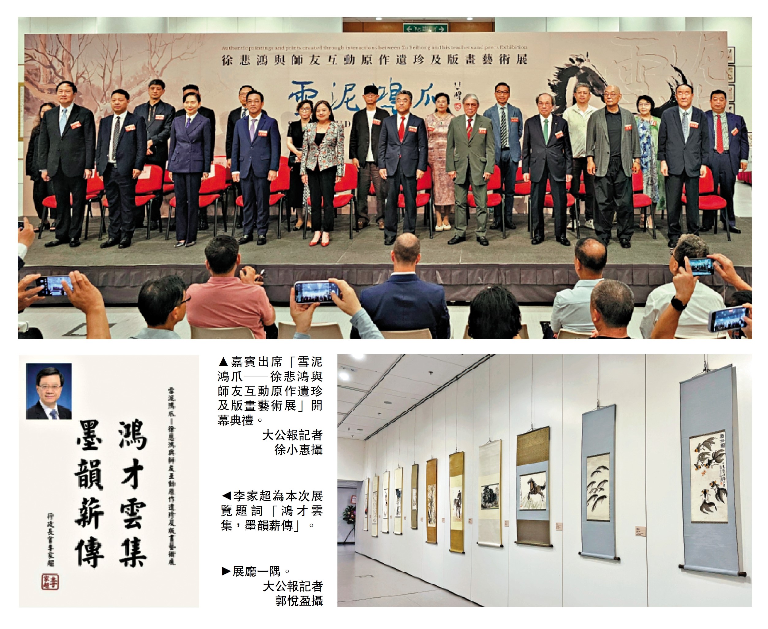 香港特區行政長官李家超為展覽題詞「鴻才雲集,墨韻薪傳」,以翰墨寄意藝術傳承,讚譽徐悲鴻融貫中西的筆墨精神及其對後世的影響。