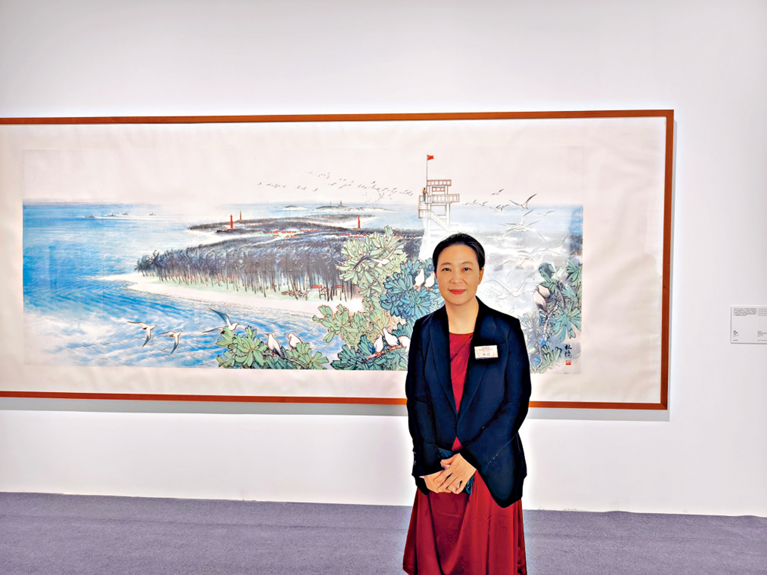 【大公報訊】記者李慧妍報道:在第四章《激情歲月》展廳中,一幅名為《西沙風光》的巨幅中國畫吸引了眾多觀眾駐足。這幅作品由中國美術家協會顧問、廣東省美術家協會名譽主席林墉創作,描繪了西沙海防前線的壯麗景象。該畫作誕生於1974年「西沙之戰」勝利後,林墉等畫家前往西沙群島考察,受到壯美景色和民族精神的感召,創作了這幅充滿力量與激情的作品。林墉的女兒、中國美術家協會副主席兼廣東省美術家協會主席林藍在接受大公報記者專訪時表示,父女二人的作品此次一同在香港展出,對她而言意義非凡。她表示,粵港澳三地的美術交流歷史悠久,而此次展覽正展現了藝術界文化傳承與跨越時代的深層互動與融合。