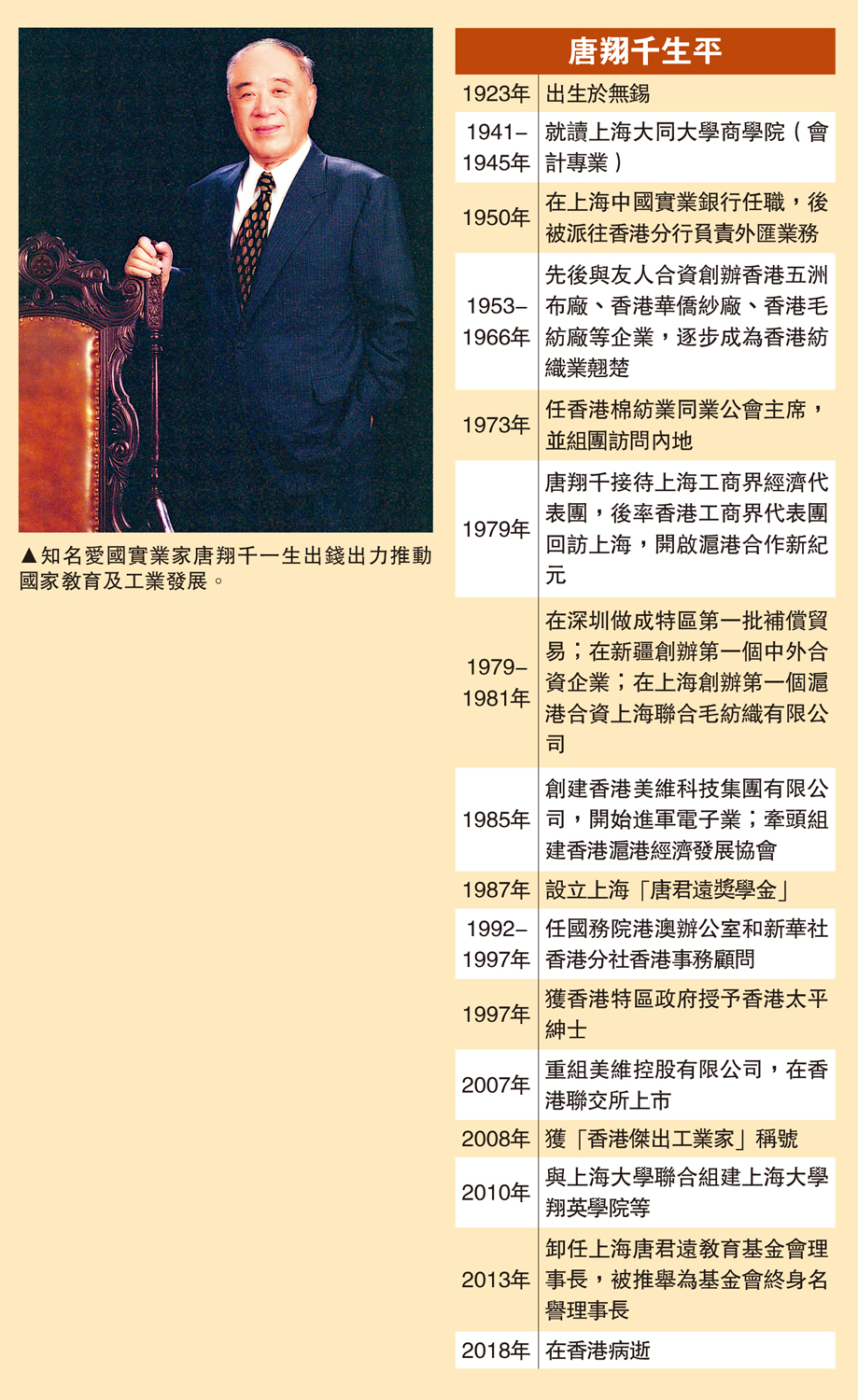 圖:知名愛國實業家唐翔千一生出錢出力,推動國家教育及工業發展。