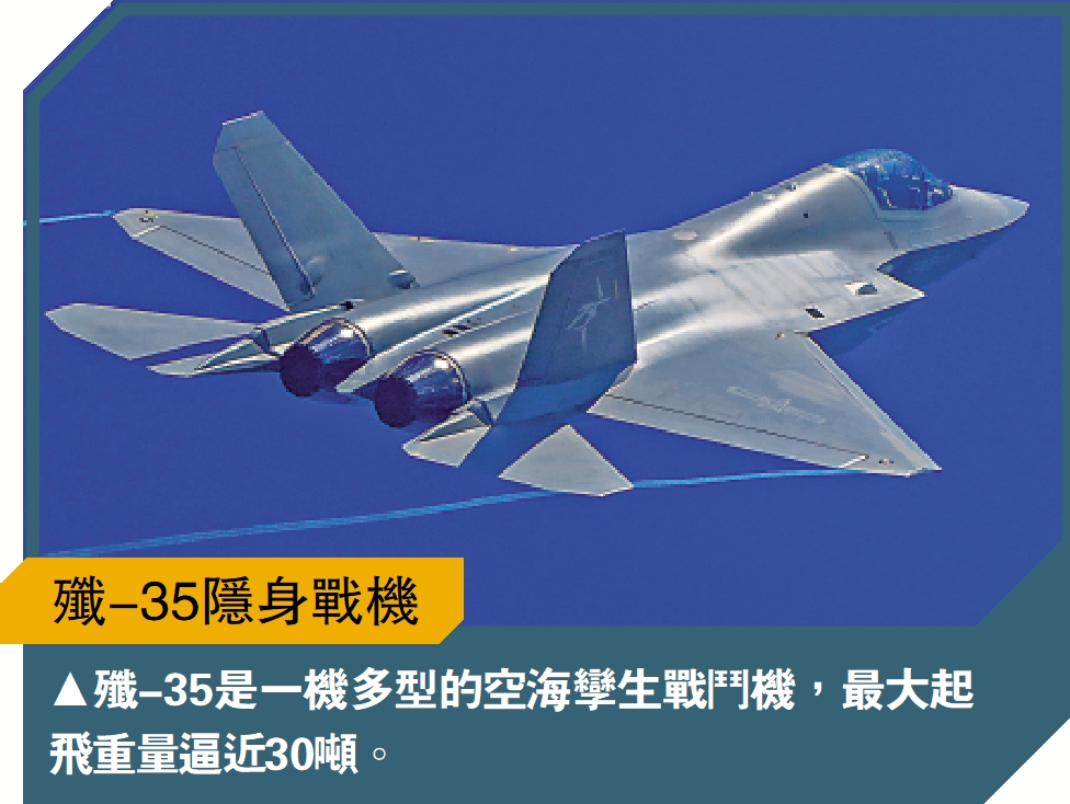 殲-35由中國航空工業集團瀋陽飛機設計研究所研製、中國航空工業集團瀋飛公司生產,是新一代隱形多用途殲擊機,採用氣動、結構與隱身一體化設計。專家介紹,殲-35是一機多型的空海孿生戰鬥機,最大起飛重量逼近30噸。