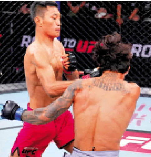 23日,UFC精英之路第四季落下帷幕。兩日比賽共有5位中國選手闖入4強,分別為輕量級選手任亞偉、羽量級選手李凱文、雛量級選手蘇郎讓波(左)、蠅量級選手尹帥與阿古拉力。\大公報記者夏微