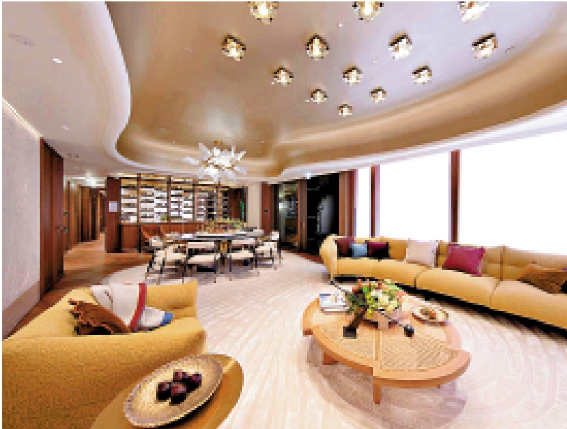 此外,該盤示範單位昨日向傳煤曝光,示範單位以1A座38樓P2室為藍本,實用面積1706方呎,原則4房間隔,設有經改動及交樓標準兩款。經改動單位由原則4房變3房,設計師將近客飯廳的睡房牆身拆除,於原來位置用作品酒區。