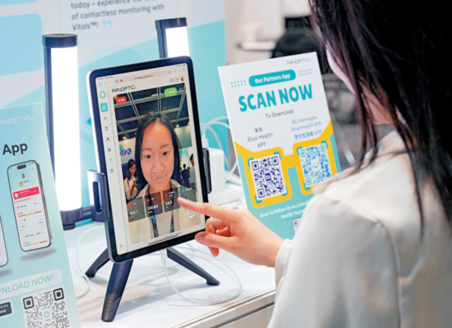 在高峰論壇的InnoHealth展示中,科大初創公司和研發人員展出多項提升病患療效及改善醫療體系的嶄新成果,全面涵蓋預防、診斷、治療以至康復預後跟進。例如獲美國食品及藥物管理局、由科大培育的初創公司PanopticAI研發的認可非接觸式生命體徵監測流動應用程式,該應用程式建基於先進的人工智能和信號處理技術,令醫療服務更普及和更具包容性。
