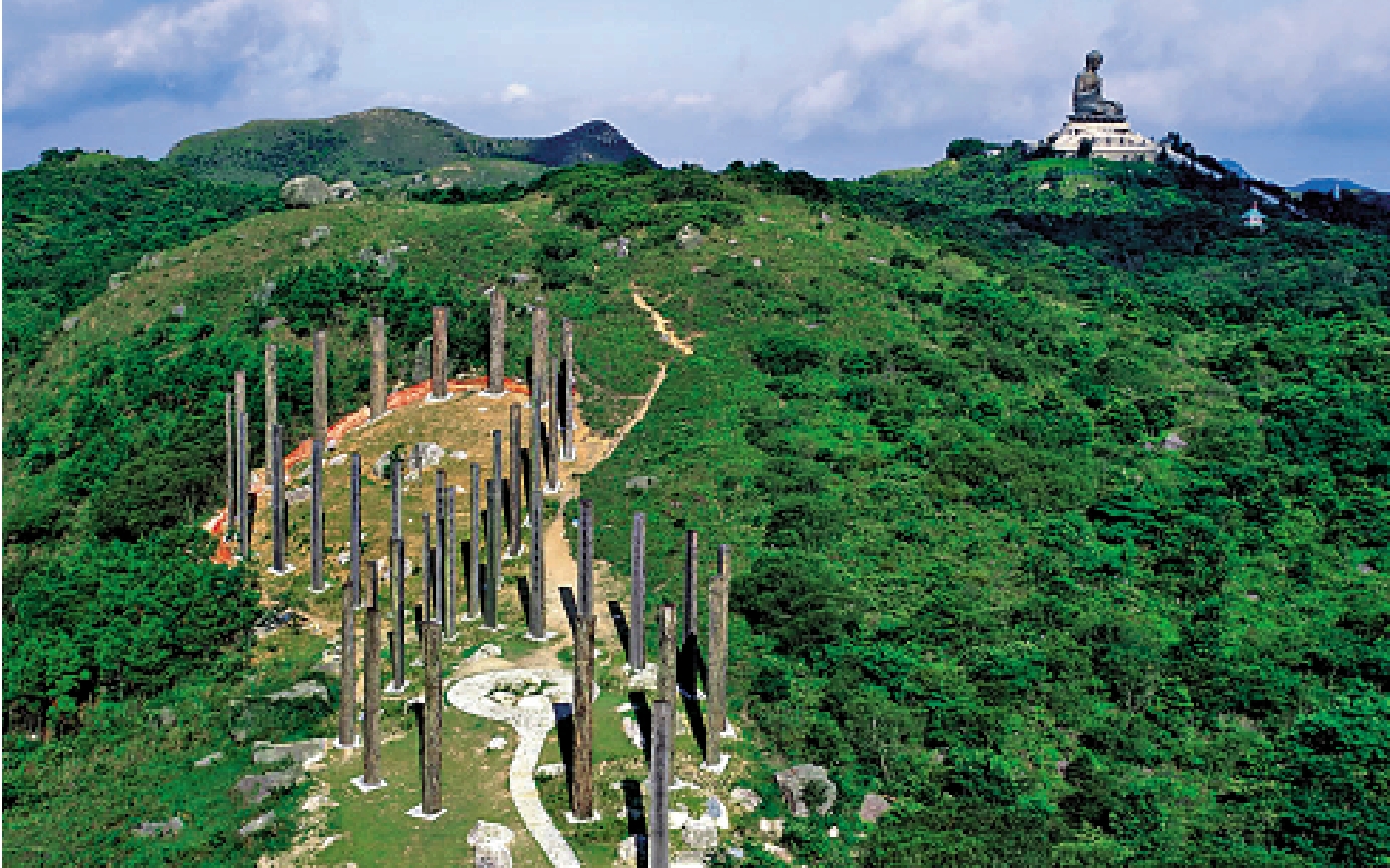 國學大師饒宗頤教授於2002年將《心經》墨寶贈予香港,並讓墨寶轉化為大型雕刻,豎立於大嶼山鳳凰山山麓的天然山坡上,成為「心經簡林」。整個「心經簡林」由外觀古樸的木柱組成,依照自然山勢排列,與大自然融為一體,形成一個獨一無二的大型戶外藝術作品。自2005年5月開幕至今,「心經簡林」深受大眾和旅客歡迎,是遊覽大嶼山昂坪的景點之一。有關「心經簡林」的詳細資料,可參閱網頁:www.tourism.gov.hk/wisdompath。