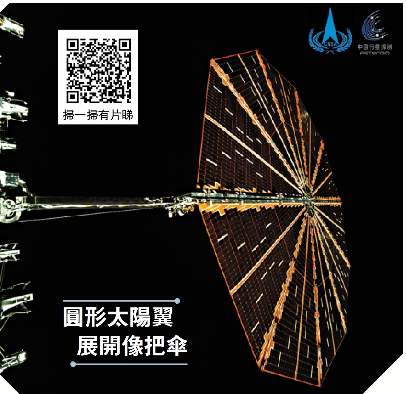 【大公報訊】記者劉凝哲北京報道:大公報記者從國家航天局獲悉,截至6月6日上午,天問二號探測器已在軌運行超8天,與地球距離超300萬公里,工況良好。為滿足在距離太陽約3.75億公里的主帶彗星開展探測的供電需求,天問二號探測器研發配置了圓形柔性太陽翼。國家航天局6日還發布了天問二號探測器傳回的圓形太陽翼展開的圖片。